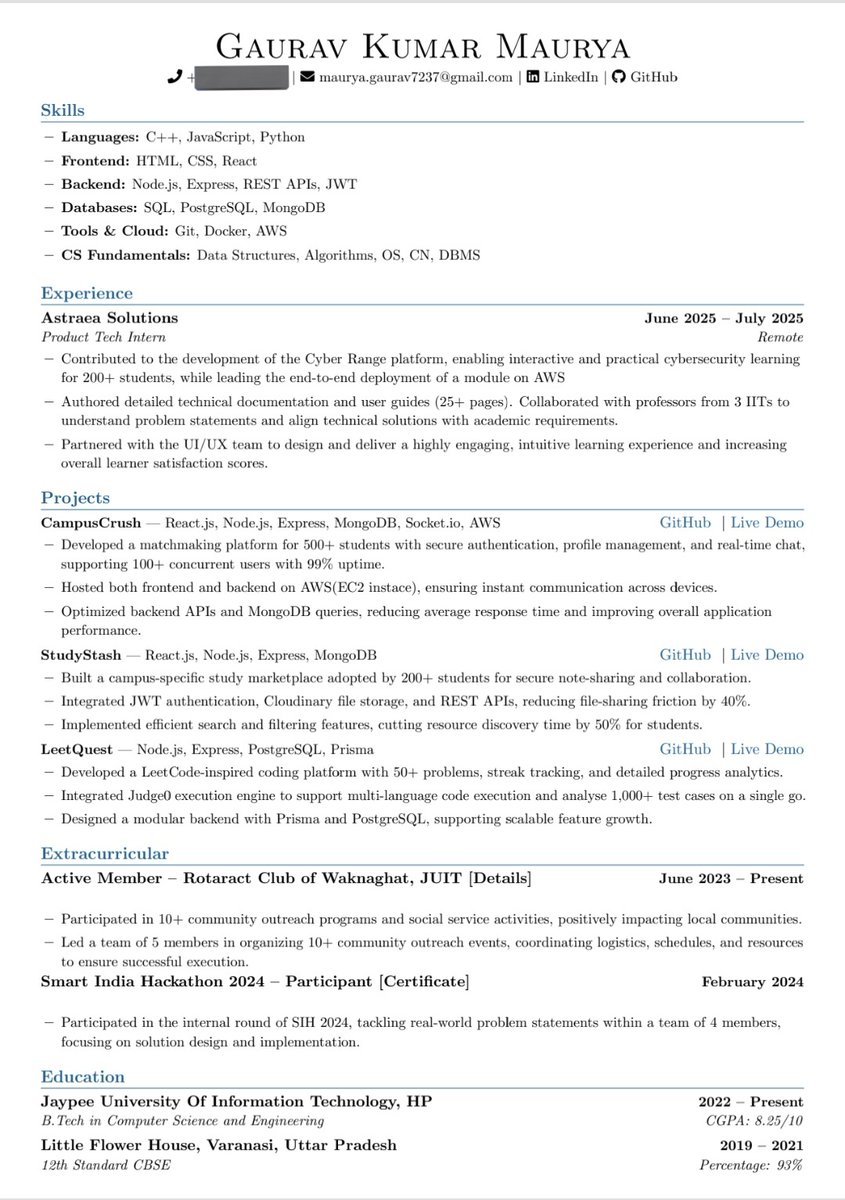 Fun fact: Despite voicing frustration with placement politics and rejection, Maurya.js remains highly active and positive, sharing clear, succinct insights that attract significant engagement.