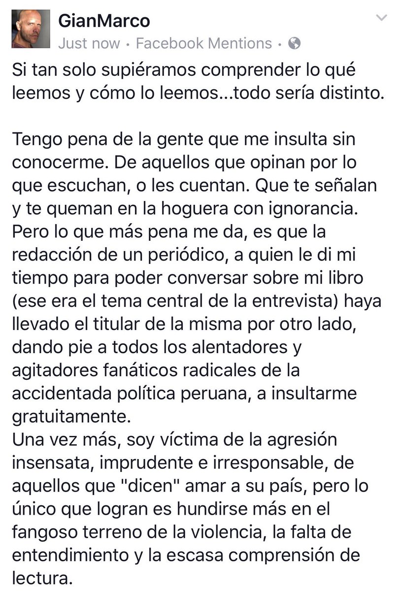 Gian Marco is a passionate Peruvian musician and social activist who uses his platform to advocate for social justice and political change in his country. He frequently expresses his views on current events and political figures, often with strong opinions and a call to action. His tweets are a mix of personal reflections, political commentary, and calls for a better future for Peru.