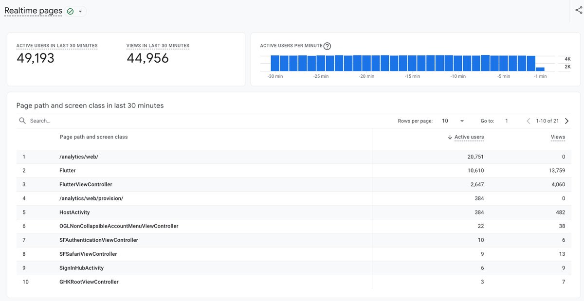 The new Realtime pages report gives you an instant view of which pages are currently being viewed across your website or app! See which pages are trending and how many visitors are on each. You can also use this data to unlock the following: 📈 Identify your most popular content 🎯 Assess the impact of your marketing campaigns 🛠️ Spot and address website issues immediately Get the insights you need and learn more about the new Realtime pages report here: goo.gle/4eDMmww