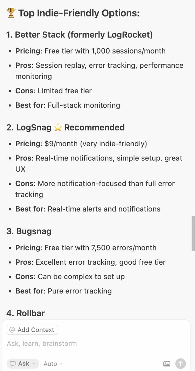 https://t.co/f1KeVEX05s","in_reply_to_user_id_str":null,"in_reply_to_status_id_str":null,"is_quote_status":0,"is_ai":null,"ai_score":null},{"bookmarked":false,"display_text_range":[0,63],"entities":{"hashtags":[],"symbols":[],"timestamps":[],"urls":[],"user_mentions":[]},"favorited":false,"lang":"en","retweeted":false,"fact_check":null,"id":"1906577168144150989","view_count":29,"bookmark_count":0,"created_at":1743398394000,"favorite_count":1,"quote_count":0,"reply_count":1,"retweet_count":0,"user_id_str":"15657755","conversation_id_str":"1906577168144150989","full_text":"If you could just build it overnight, why pay for any software?","in_reply_to_user_id_str":null,"in_reply_to_status_id_str":null,"is_quote_status":0,"is_ai":null,"ai_score":null},{"bookmarked":false,"display_text_range":[0,101],"entities":{"hashtags":[],"media":[{"display_url":"pic.x.com/852FnyjQ9P","expanded_url":"https://x.com/hootan_nik/status/1950802102529482808/photo/1","id_str":"1950801668448387072","indices":[102,125],"media_key":"3_1950801668448387072","media_url_https":"https://pbs.twimg.com/media/GxKjyBsbAAAcYX8.jpg","type":"photo","url":"https://t.co/852FnyjQ9P","ext_media_availability":{"status":"Available"},"features":{"large":{"faces":[{"x":24,"y":515,"h":110,"w":110}]},"medium":{"faces":[{"x":21,"y":470,"h":100,"w":100}]},"small":{"faces":[{"x":12,"y":267,"h":57,"w":57}]},"orig":{"faces":[{"x":24,"y":515,"h":110,"w":110}]}},"sizes":{"large":{"h":1312,"w":690,"resize":"fit"},"medium":{"h":1200,"w":631,"resize":"fit"},"small":{"h":680,"w":358,"resize":"fit"},"thumb":{"h":150,"w":150,"resize":"crop"}},"original_info":{"height":1312,"width":690,"focus_rects":[{"x":0,"y":692,"w":690,"h":386},{"x":0,"y":540,"w":690,"h":690},{"x":0,"y":492,"w":690,"h":787},{"x":0,"y":0,"w":656,"h":1312},{"x":0,"y":0,"w":690,"h":1312}]},"media_results":{"result":{"media_key":"3_1950801668448387072"}}}],"symbols":[],"timestamps":[],"urls":[],"user_mentions":[{"id_str":"831266147643359233","name":"Shayan","screen_name":"ImSh4yy","indices":[4,12]}]},"extended_entities":{"media":[{"display_url":"pic.x.com/852FnyjQ9P","expanded_url":"https://x.com/hootan_nik/status/1950802102529482808/photo/1","id_str":"1950801668448387072","indices":[102,125],"media_key":"3_1950801668448387072","media_url_https":"https://pbs.twimg.com/media/GxKjyBsbAAAcYX8.jpg","type":"photo","url":"https://t.co/852FnyjQ9P","ext_media_availability":{"status":"Available"},"features":{"large":{"faces":[{"x":24,"y":515,"h":110,"w":110}]},"medium":{"faces":[{"x":21,"y":470,"h":100,"w":100}]},"small":{"faces":[{"x":12,"y":267,"h":57,"w":57}]},"orig":{"faces":[{"x":24,"y":515,"h":110,"w":110}]}},"sizes":{"large":{"h":1312,"w":690,"resize":"fit"},"medium":{"h":1200,"w":631,"resize":"fit"},"small":{"h":680,"w":358,"resize":"fit"},"thumb":{"h":150,"w":150,"resize":"crop"}},"original_info":{"height":1312,"width":690,"focus_rects":[{"x":0,"y":692,"w":690,"h":386},{"x":0,"y":540,"w":690,"h":690},{"x":0,"y":492,"w":690,"h":787},{"x":0,"y":0,"w":656,"h":1312},{"x":0,"y":0,"w":690,"h":1312}]},"media_results":{"result":{"media_key":"3_1950801668448387072"}}}]},"favorited":false,"lang":"en","possibly_sensitive":false,"possibly_sensitive_editable":true,"retweeted":false,"fact_check":null,"id":"1950802102529482808","view_count":1441,"bookmark_count":1,"created_at":1753942440000,"favorite_count":14,"quote_count":0,"reply_count":1,"retweet_count":0,"user_id_str":"15657755","conversation_id_str":"1950802102529482808","full_text":"Hey @ImSh4yy, it seems Cursor (or LLMs) recommends your product as the top Sentry alternative. Lucky! https://t.co/852FnyjQ9P","in_reply_to_user_id_str":null,"in_reply_to_status_id_str":null,"is_quote_status":0,"is_ai":null,"ai_score":null},{"bookmarked":false,"display_text_range":[0,73],"entities":{"hashtags":[],"symbols":[],"timestamps":[],"urls":[],"user_mentions":[{"id_str":"1422255111422754816","name":"buildspace","screen_name":"_buildspace","indices":[20,32]}]},"favorited":false,"lang":"en","retweeted":false,"fact_check":null,"id":"1800259626883305563","view_count":20,"bookmark_count":0,"created_at":1718050316000,"favorite_count":1,"quote_count":0,"reply_count":0,"retweet_count":0,"user_id_str":"15657755","conversation_id_str":"1800259626883305563","full_text":"I got accepted into @_buildspace nights & weekends season 5. yeyyy!!!","in_reply_to_user_id_str":null,"in_reply_to_status_id_str":null,"is_quote_status":0,"is_ai":null,"ai_score":null},{"bookmarked":false,"display_text_range":[0,191],"entities":{"hashtags":[{"indices":[177,191],"text":"buildinpublic"}],"symbols":[],"timestamps":[],"urls":[],"user_mentions":[]},"favorited":false,"lang":"en","retweeted":false,"fact_check":null,"id":"1808882990031982821","view_count":22,"bookmark_count":0,"created_at":1720106286000,"favorite_count":0,"quote_count":0,"reply_count":0,"retweet_count":0,"user_id_str":"15657755","conversation_id_str":"1808882990031982821","full_text":"Is it bad that I am developing addiction again for software development after 6-7 years of not coding ??\n\nLike I canât wait to go back home & build or finish my projects. \n\n#buildinpublic","in_reply_to_user_id_str":null,"in_reply_to_status_id_str":null,"is_quote_status":0,"is_ai":null,"ai_score":null},{"bookmarked":false,"display_text_range":[0,44],"entities":{"hashtags":[],"media":[{"display_url":"pic.x.com/y1ozyjakwr","expanded_url":"https://twitter.com/hootan_nik/status/1820636825087848479/photo/1","id_str":"1820636811817111552","indices":[45,68],"media_key":"3_1820636811817111552","media_url_https":"https://pbs.twimg.com/media/GUQziMFb0AAMCx3.jpg","type":"photo","url":"https://t.co/Y1ozYJakwr","ext_media_availability":{"status":"Available"},"features":{"large":{"faces":[{"x":1088,"y":508,"h":148,"w":148}]},"medium":{"faces":[{"x":807,"y":377,"h":109,"w":109}]},"small":{"faces":[{"x":457,"y":213,"h":62,"w":62}]},"orig":{"faces":[{"x":1088,"y":508,"h":148,"w":148}]}},"sizes":{"large":{"h":1616,"w":1290,"resize":"fit"},"medium":{"h":1200,"