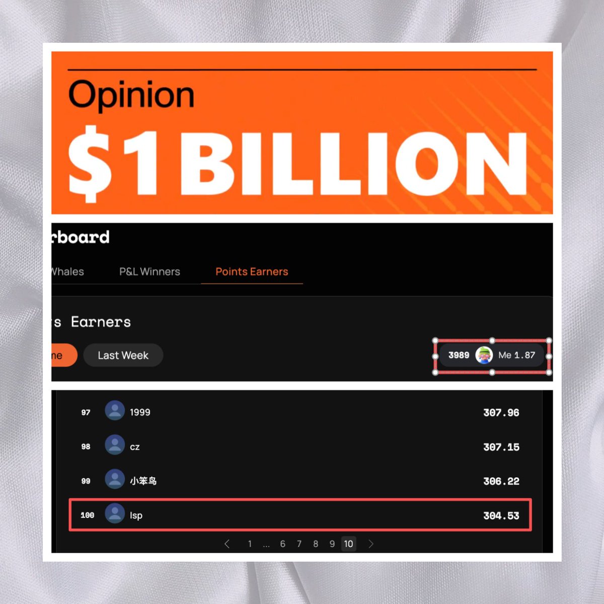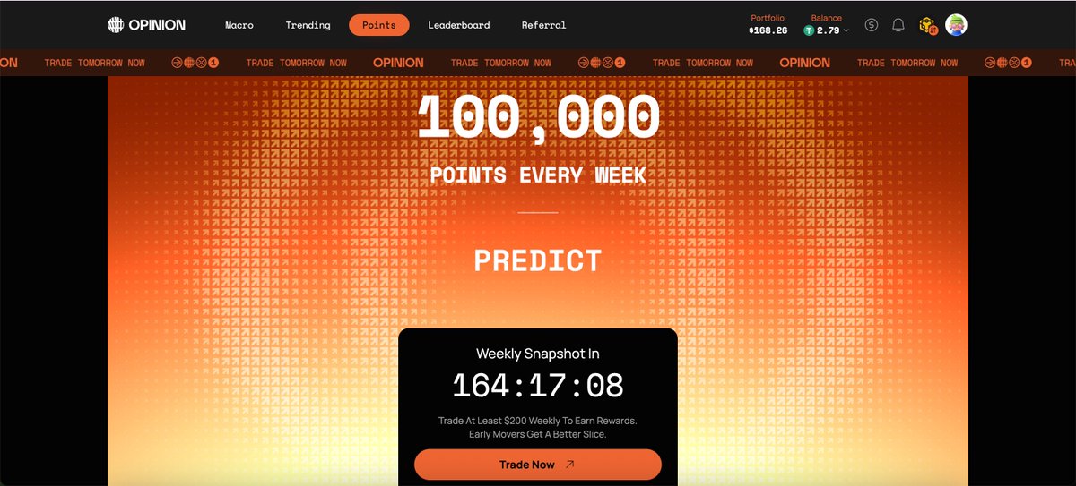 ⚡️ Nice achievement Successfully developed and shared comprehensive, step-by-step strategies that helped his followers navigate Opinion's scoring system and trading rules more effectively than official channels.