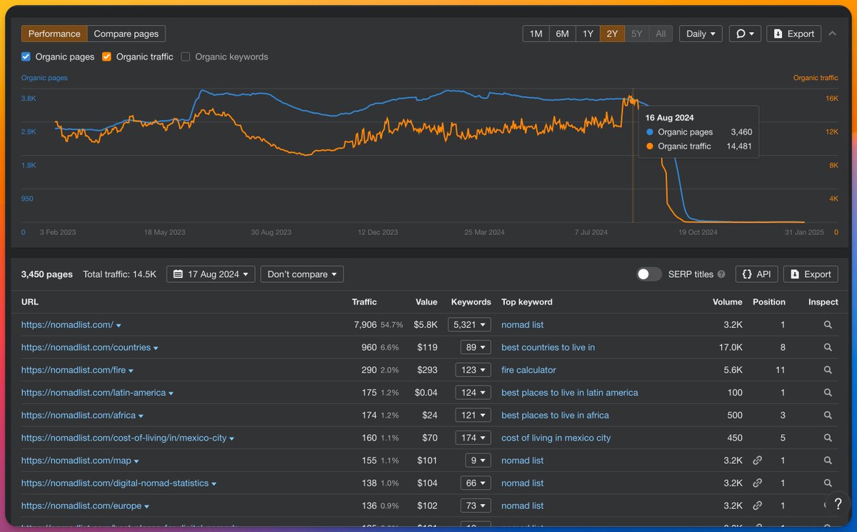 What happened to Nomadlist SEO @levelsio?