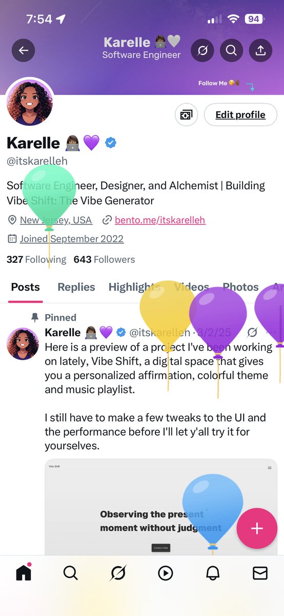 Karelle is a vibrant software engineer and designer who thrives on building meaningful connections through her passion projects like @vibeshiftapp. She blends creativity with tech, inviting collaboration and conversations around coding, design, and productivity hacks. Her engaging tweets and eagerness to connect make her a central hub for like-minded creators and developers.