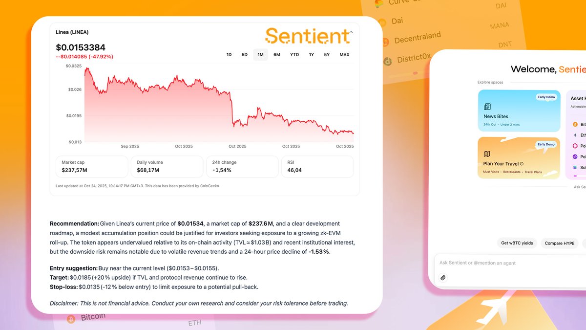 Today I took a closer look at $Linea before adding it to my portfolio. I wanted to see how @SentientAGI Chat would evaluate its current market position and future potential.