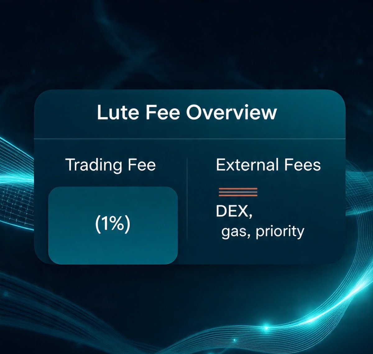 Understanding Fees on @lute Every trade comes with two types of costs - one internal, one external. Knowing both helps you trade smarter 👇 1️⃣ Trading Fee: A flat 1% fee per executed trade - simple, transparent, predictable. 2️⃣ External Fees: These depend on network conditions and include: DEX/router fees Gas or priority fees Other on-chain costs Because @lute operates fully on-chain, these external factors ensure your trades stay secure and verifiable - directly from your wallet. Transparency isn’t just a feature; it’s the foundation.