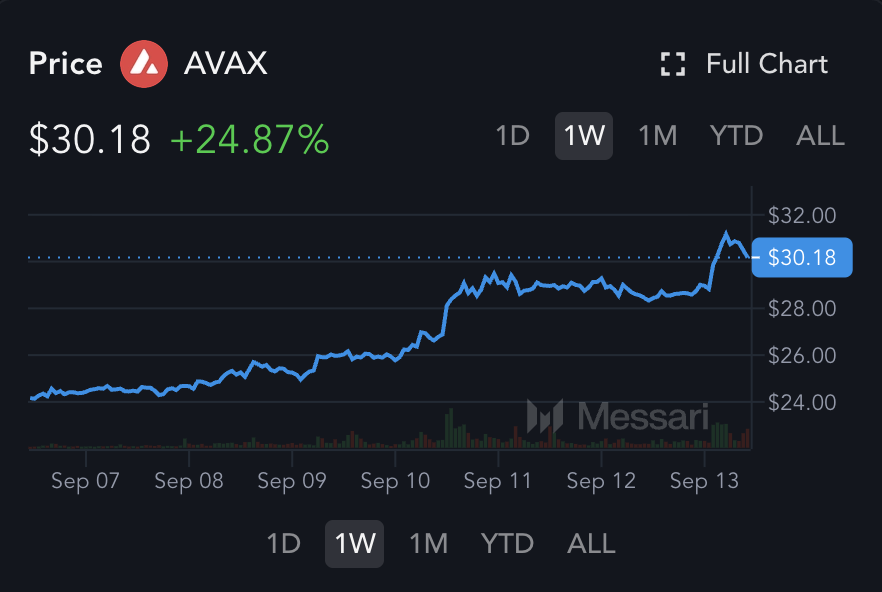 GM @avax family! I don't talk much about price action, but i'll make an exception for this... we are back in the $30s! Avalanche is up 25% on the weekly, breaking out of that long downward trend. A lot of metrics like TVL, DEX volume and Stablecoin MC are hitting new local highs that we haven't seen since 2022. Transactions and active wallets numbers are strong. New projects continue to deploy in the ecosystem. Bullish news and announcements almost every day. Very exciting times to be apart of the 🔺 chain!