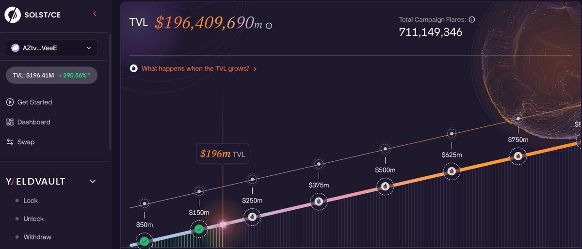 🔥 SolsticeFi [ @solsticefi ] is on a roll, about to break 200M TVL.