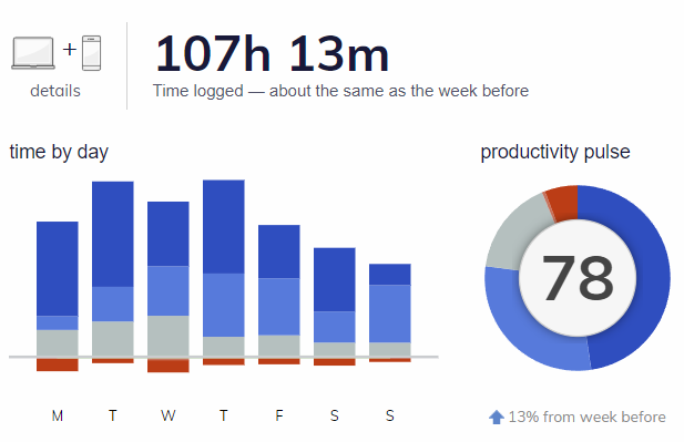 I have come to the realization that my overall sense of well-being is strongly correlated with the results of my weekly @rescuetime report.