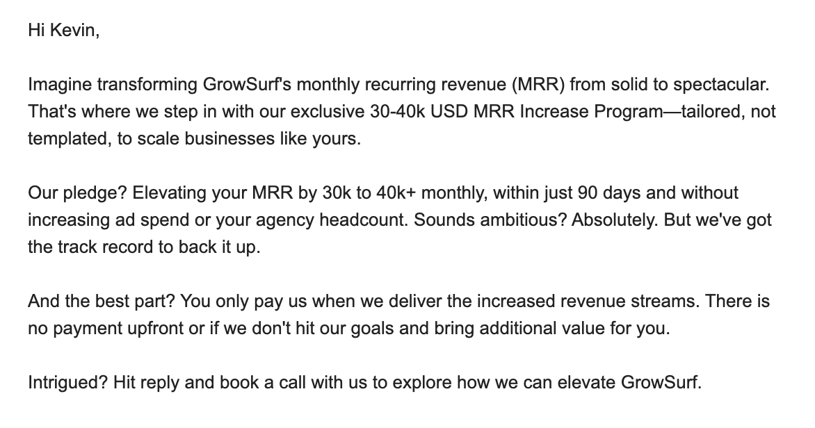 Want a demo of GrowSurf? Visit growsurf.com and join 100+ companies that have added a combined revenue of $340 million using GrowSurf.