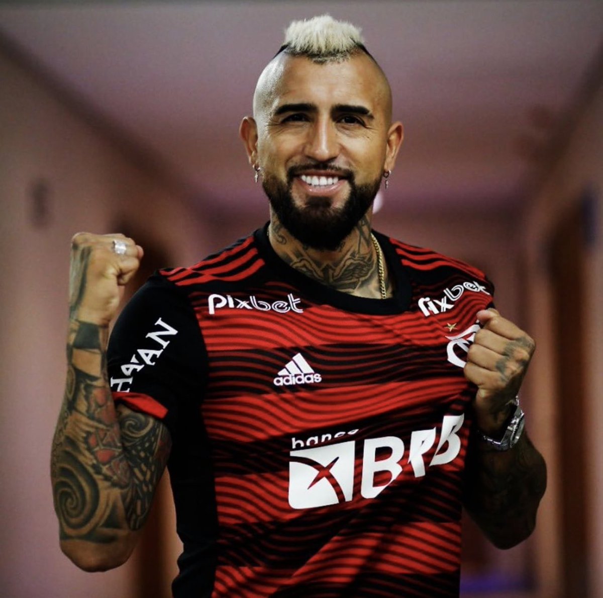 Meet Arturo Vidal, the charismatic powerhouse of @flamengo and the Chilean National Team! A true showstopper, his tweets radiate passion, team spirit, and a sprinkle of humor, drawing fans and fellow players into his vibrant world. With a combination of motivational messages and heartfelt declarations, he's more than just an athlete; he's a beacon of fandom!
