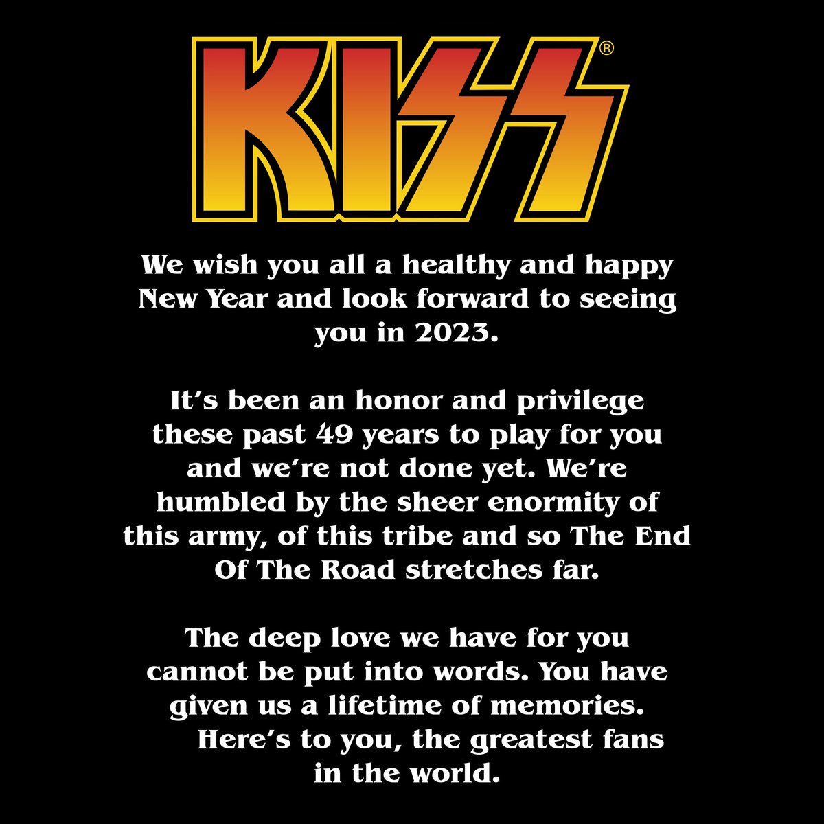 KISS excels at engaging with followers through heartfelt tributes and a positive, celebratory tone that resonates with rock fans everywhere.