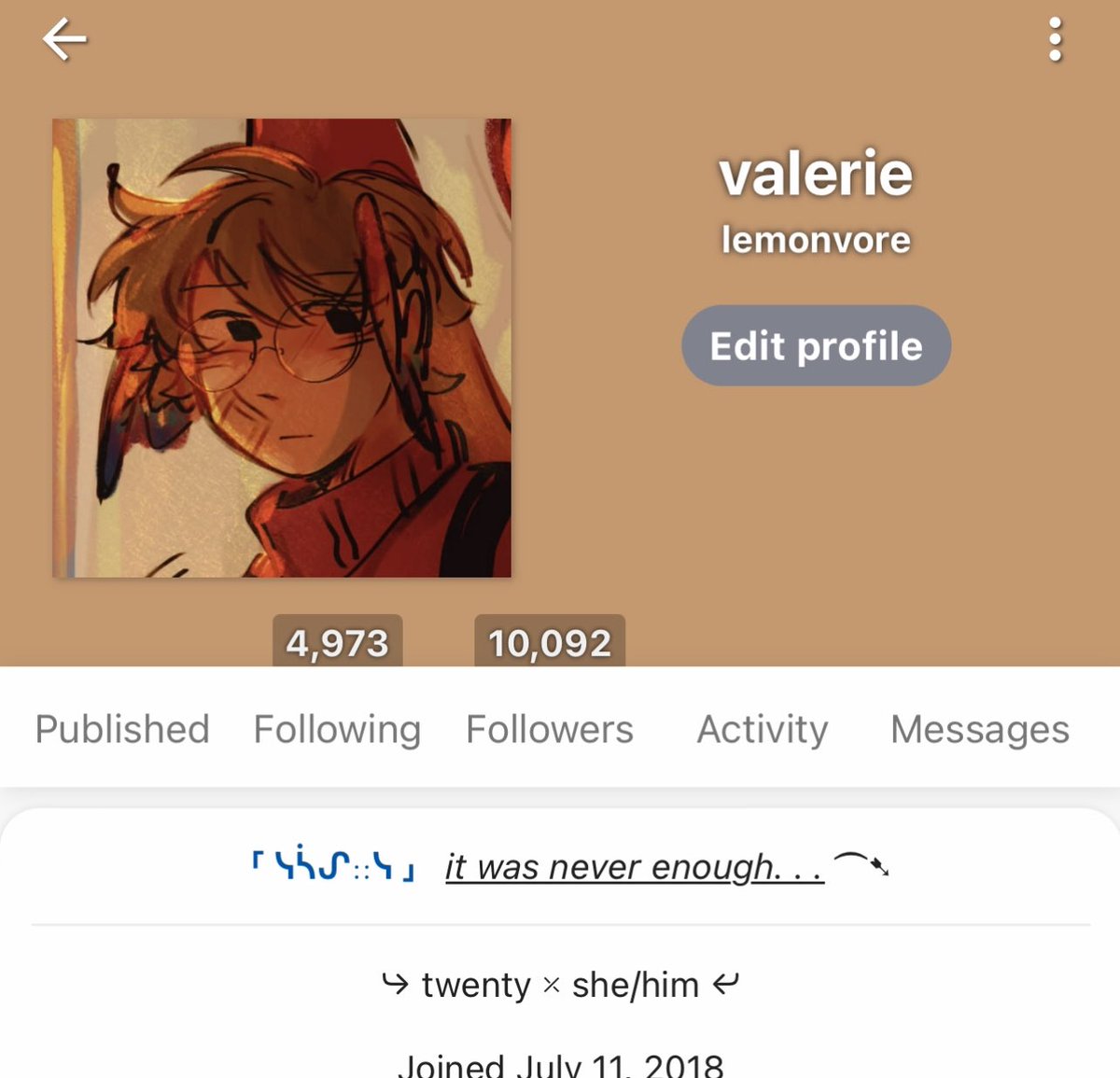 Fun fact: Valerie manages to keep a lively social presence with over 1200 tweets, yet follows only 73 accountsâcarefully curating their digital space like a selective book club that only wants the real talk.
