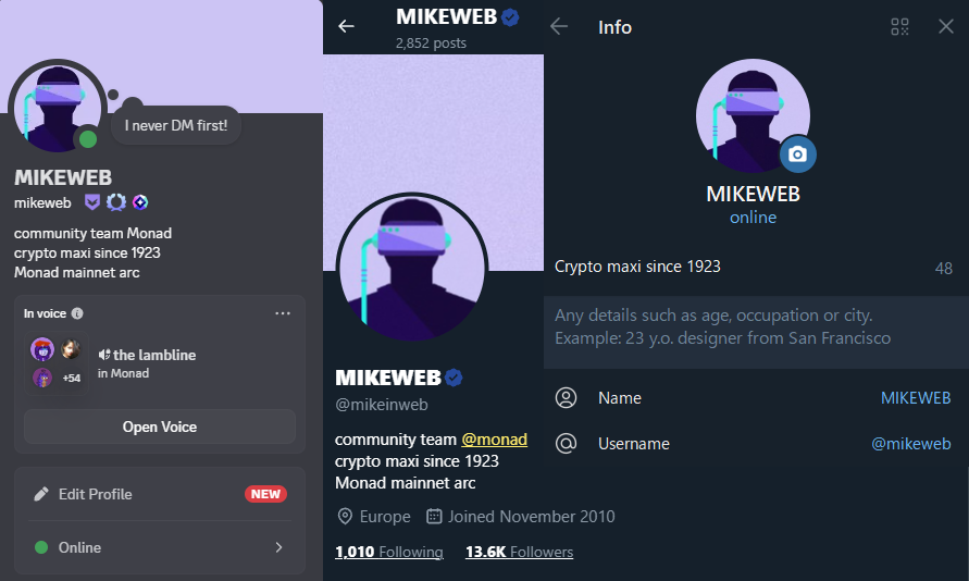 MIKEWEB is the digital community builder extraordinaire for Monadโs cryptosphere, blending crypto wisdom with a splash of royal purple pride. With nearly 3,510 tweets of engaging, timely updates and spirited conversations, they thrive on creating an inclusive, informed space for crypto enthusiasts. Their voice balances caution with enthusiasm, guiding followers through the exciting but sometimes treacherous world of Web3.