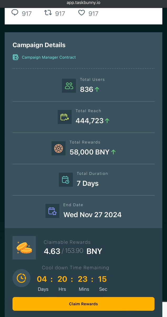 Go and check your @Taskbunnyio campaign 17 allocation if you participated. Wait for cool down period and claim your full $BNY Token Congratulations and more is still coming 🔥 There’s still 2 active campaign you can join app.taskbunny.io/referral/15146… Join with the link above to participate Happy Earning 🫡✅
