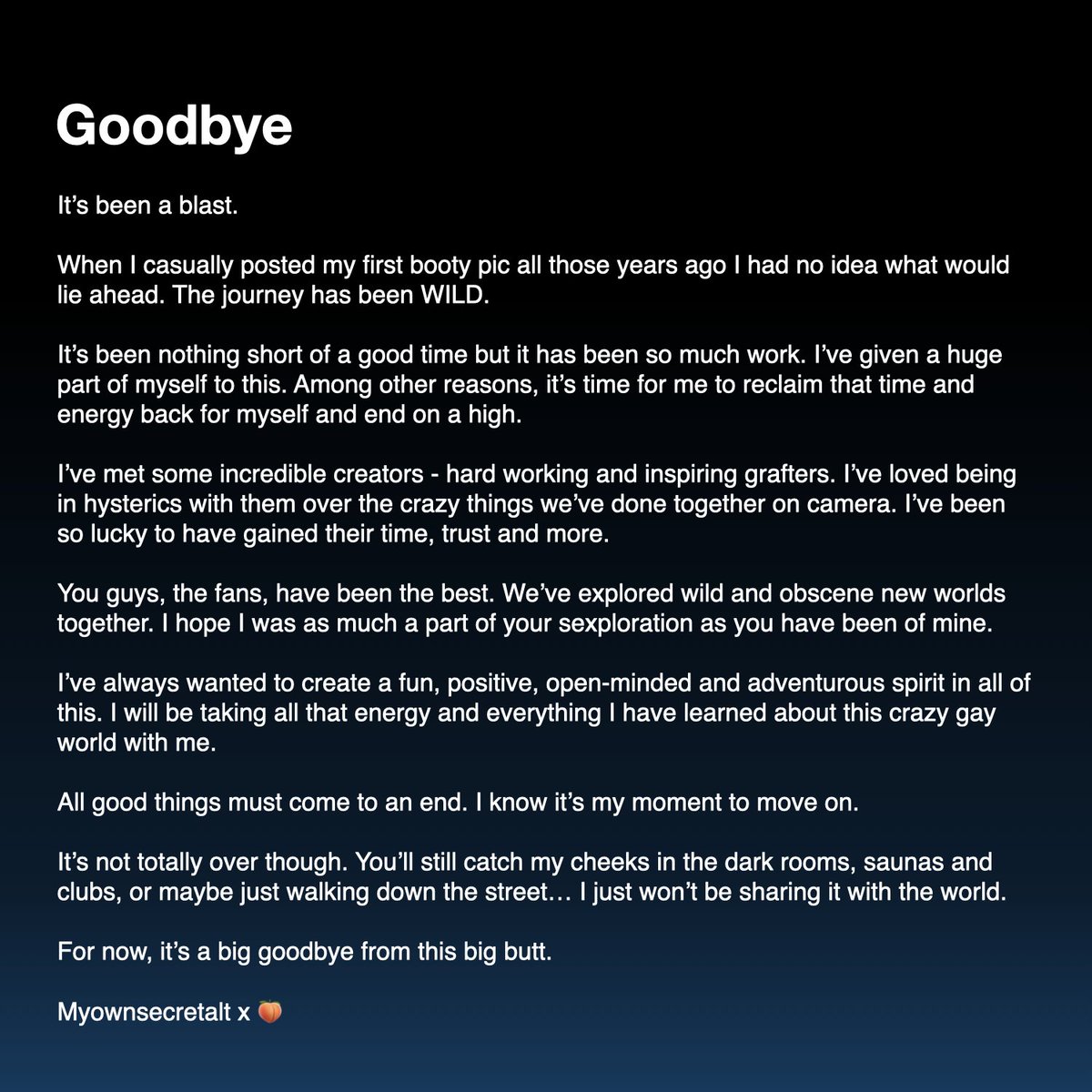 {"data":{"__meta":{"device":false,"path":"/creators/myownsecretalt"},"/creators/myownsecretalt":{"data":{"user":{"id":"1550197168518086656","name":"Beefy Butt Boy","description":"6’1. 94kg. Big butt. 🔞 Subscribe for hundreds of exclusive photos and videos. 🔥 https://t.co/jrjSC2M0a4","followers_count":238471,"friends_count":2242,"statuses_count":7597,"profile_image_url_https":"https://pbs.twimg.com/profile_images/1774564263371194368/M-0n9xuc_normal.jpg","screen_name":"myownsecretalt","location":"","entities":{"description":{"urls":[{"display_url":"onlyfans.com/myownsecretalt…","expanded_url":"http://onlyfans.com/myownsecretalt/c2","url":"https://t.co/jrjSC2M0a4","indices":[80,103]}]},"url":{"urls":[{"display_url":"linktr.ee/myownsecretalt","expanded_url":"http://www.linktr.ee/myownsecretalt","url":"https://t.co/kQvQTZN6wj","indices":[0,23]}]}}},"details":{"type":"The Entertainer","description":"Beefy Butt Boy brings the heat with bold, unapologetic content that grabs attention and keeps followers coming back for more. With a unique blend of humor, explicit charm, and consistent posting, this profile stands out as a vibrant source of adult-themed entertainment. Their audience clearly loves the edgy, playful vibe that turns up the fun and the volume on X.","purpose":"To entertain and engage a niche audience by sharing provocative, charismatic, and often humorous content that celebrates bold expression and personal confidence.","beliefs":"Beefy Butt Boy likely values authenticity, unabashed self-expression, and the power of connection through shared risqué humor. They believe in pushing boundaries and embracing sexuality without shame, fostering a community that’s open, fun, and inclusive.","facts":"Fun fact: Despite not having a publicly visible follower count, Beefy Butt Boy’s tweets have racked up tens of thousands of likes and thousands of retweets, proving just how magnetic their content is!","strength":"Their biggest strength lies in their fearless, consistent, and engaging content creation, which sparks high interaction and builds a loyal fanbase. They master the art of stirring excitement and connection within their community through humor and bold visuals.","weakness":"The profile’s heavy reliance on explicit content might limit broader audience growth and can deter potential new followers who prefer subtler approaches or are outside the niche adult entertainment circle. Additionally, the high frequency of posts risks follower fatigue if not balanced with varied engagement styles.","recommendation":"To grow their audience further on X, Beefy Butt Boy could diversify content slightly by adding behind-the-scenes glimpses, personal stories, or interactive Q&A sessions to deepen follower engagement beyond the visual appeal. Collaborating with complementary content creators and using relevant trending hashtags strategically can boost discovery and follower loyalty.","roast":"You post enough spicy content to fuel a conspiracy theory that your keyboard’s just a naughty emoji factory that never takes a day off—seriously, do your fingers get a break or have they unionized for overtime pay yet?","win":"Achieving viral tweet metrics with tens of thousands of likes and thousands of retweets on adult-themed content is no small feat—it’s a clear sign Beefy Butt Boy knows exactly how to captivate and entertain a dedicated audience."},"tweets":[{"bookmarked":false,"display_text_range":[0,74],"entities":{"hashtags":[],"media":[{"display_url":"pic.x.com/9c6XzzznVO","expanded_url":"https://x.com/myownsecretalt/status/1958918785651376206/video/1","id_str":"1958918608286846976","indices":[75,98],"media_key":"13_1958918608286846976","media_url_https":"https://pbs.twimg.com/amplify_video_thumb/1958918608286846976/img/EfkzWYk2w_ODUG38.jpg","type":"video","url":"https://t.co/9c6XzzznVO","additional_media_info":{"monetizable":false},"ext_media_availability":{"status":"Available"},"sizes":{"large":{"h":1080,"w":1920,"resize":"fit"},"medium":{"h":675,"w":1200,"resize":"fit"},"small":{"h":383,"w":680,"resize":"fit"},"thumb":{"h":150,"w":150,"resize":"crop"}},"original_info":{"height":1080,"width":1920,"focus_rects":[]},"allow_download_status":{"allow_download":true},"video_info":{"aspect_ratio":[16,9],"duration_millis":30530,"variants":[{"content_type":"application/x-mpegURL","url":"https://video.twimg.com/amplify_video/1958918608286846976/pl/Ayi6LsubsXrs3t1A.m3u8?tag=21"},{"bitrate":256000,"content_type":"video/mp4","url":"https://video.twimg.com/amplify_video/1958918608286846976/vid/avc1/480x270/WJTFC3FoKXZZMndf.mp4?tag=21"},{"bitrate":832000,"content_type":"video/mp4","url":"https://video.twimg.com/amplify_video/1958918608286846976/vid/avc1/640x360/aSI_9MaanMXXHT8o.mp4?tag=21"},{"bitrate":2176000,"content_type":"video/mp4","url":"https://video.twimg.com/amplify_video/1958918608286846976/vid/avc1/1280x720/2EtVW03h0EjD6NLu.mp4?tag=21"},{"bitrate":10368000,"content_type":"video/mp4","url":"https://video.twimg.com/amplify_video/1958918608286846976/vid/avc1/1920x1080/n6dQ2qZyUm_NuMUi.mp4?tag=21"}]},"media_results":{"result":{"media_key":"13_1958918608286846976"}}}],"symbols":[],"timestamps":[],"urls":[{"display_url":"Linktr.ee/myownsecretalt","expanded_url":"http://Linktr.ee/myownsecretalt","url":"https://t.co/01lqhCrGnN","indices":[51,74]}],"user_mentions":[{"id_str":"1484009063964983297","name":"DEEPBREEDZ - on break","screen_name":"deepbreedz","indices":[37,48]}]},"extended_entities":{"media":[{"display_url":"pic.x.com/9c6XzzznVO","expanded_url":"https://x.com/myownsecretalt/status/1958918785651376206/video/1","id_str":"1958918608286846976","indices":[75,98],"media_key":"13_1958918608286846976","media_url_https":"https://pbs.twimg.com/amplify_video_thumb/1958918608286846976/img/EfkzWYk2w_ODUG38.jpg","type":"video","url":"https://t.co/9c6XzzznVO","additional_media_info":{"monetizable":false},"ext_media_availability":{"status":"Available"},"sizes":{"large":{"h":1080,"w":1920,"resize":"fi