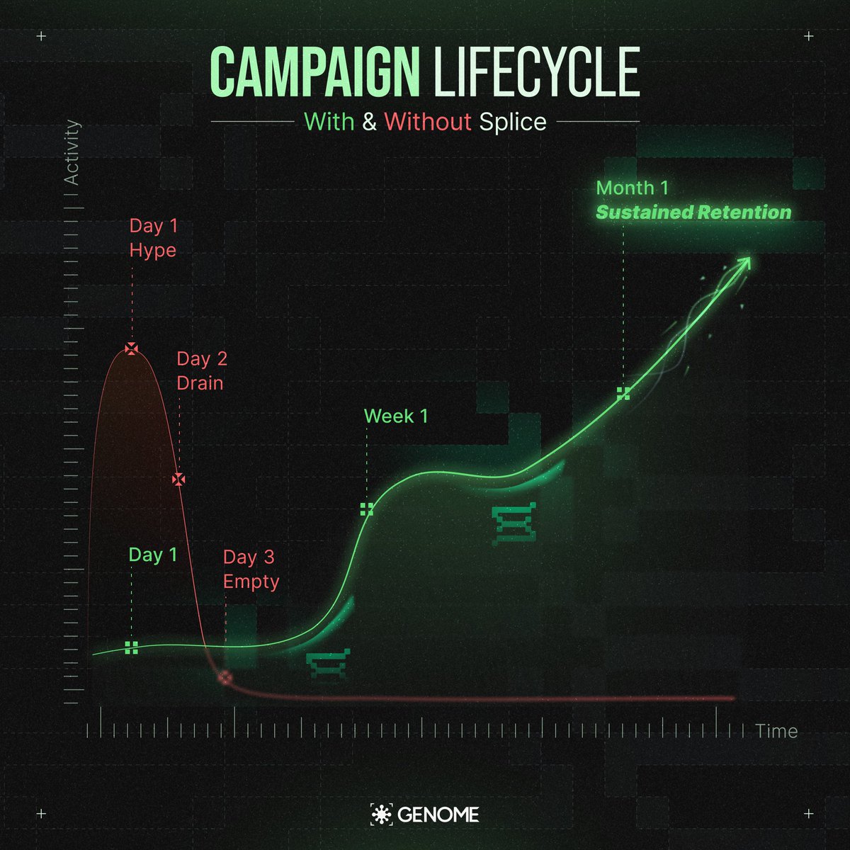 Web3 retention isn't a buzzword, it's the quiet killer of most protocols. Too many projects chase clicks that vanish overnight, leaving empty wallets and ghosted communities. But @genome_protocol sees through the noise. They're rolling out the Retention Economy right now, where every verified interaction compounds into real stakes. Think about it: on-chain quests that track your depth, not just your dip in. Splice layers on top, blending off-chain vibes like consistent yaps with on-chain proofs from Edge badges and token flows. It scores your behavioral cred, filters out the fakes, and turns fleeting attention into ownable data you control. No more bot farms gaming leaderboards. This is PoE in action, proof of engagement that rewards the grinders who stick around, build teams, and shape the ecosystem. Recent drop: +20% active users last month, 17K weekly txns from real players, not scripts. That's momentum you feel before you see it. And with $NOME gearing up for TGE, staking here means voting on what grows next, unlocking adaptive AI strategies that evolve with your playstyle. I've been watching the Yapper leaderboards heat up, top quackers like @TMA_420 pulling in tranches that prove consistency pays. If you're building or just grinding games, Genome's superchain isn't waiting for permission. It's forking the future where your moves in Astra Nova or PlayEFAS feed a unified economy, royalties flowing back to creators who earn them. Join the Discord reset, hit those Galxe quests, and watch your footprint turn into equity. This isn't hype dropping. It's the loop that sticks. #GameFAI