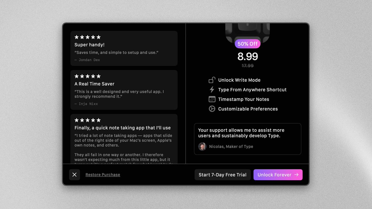 ⚡ Indie hacker @usetype_app ($3,000+)