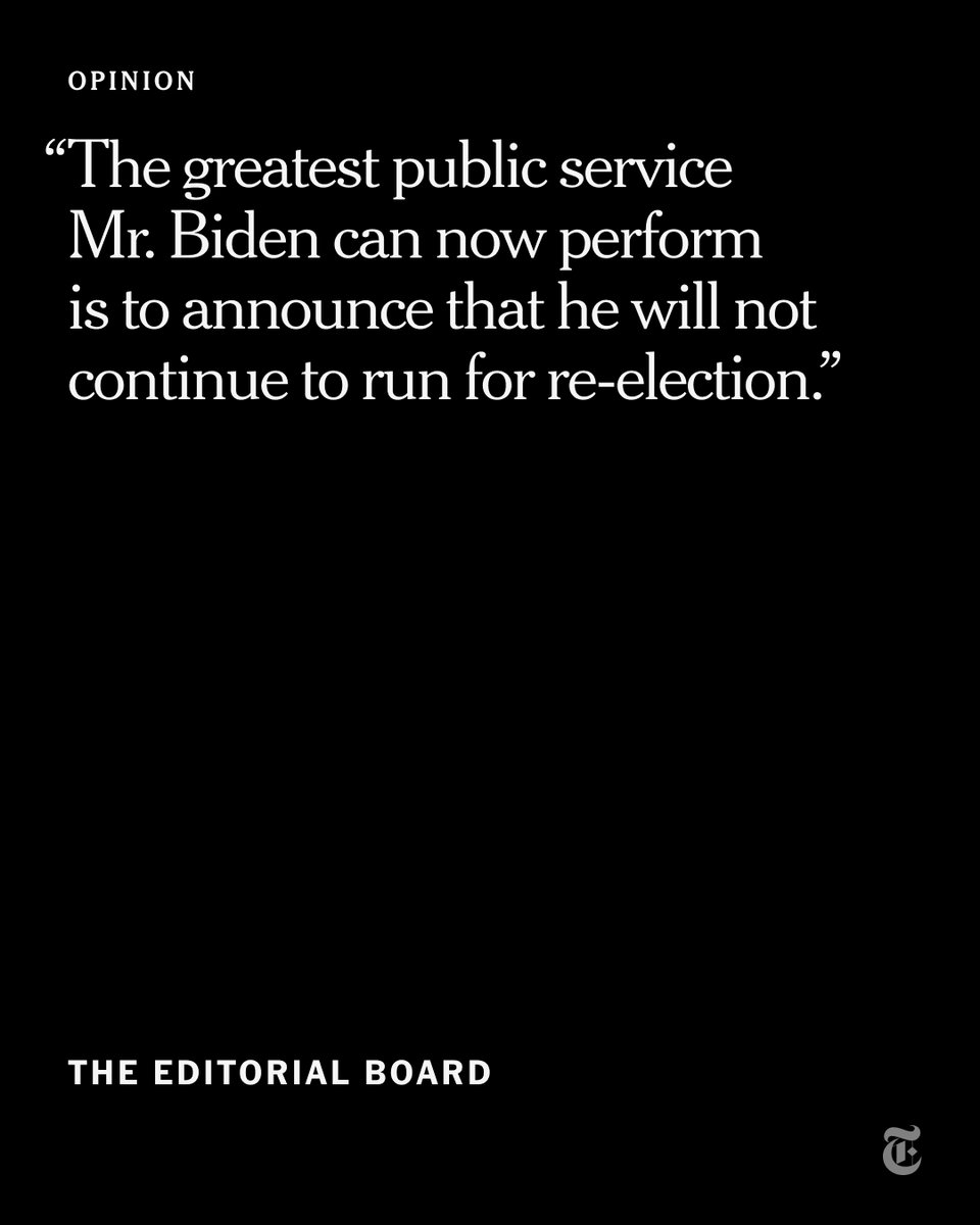 The greatest public service President Biden can now perform is to announce that he will not run for re-election, the editorial board writes after Thursday's presidential debate. nyti.ms/3VN9QHo