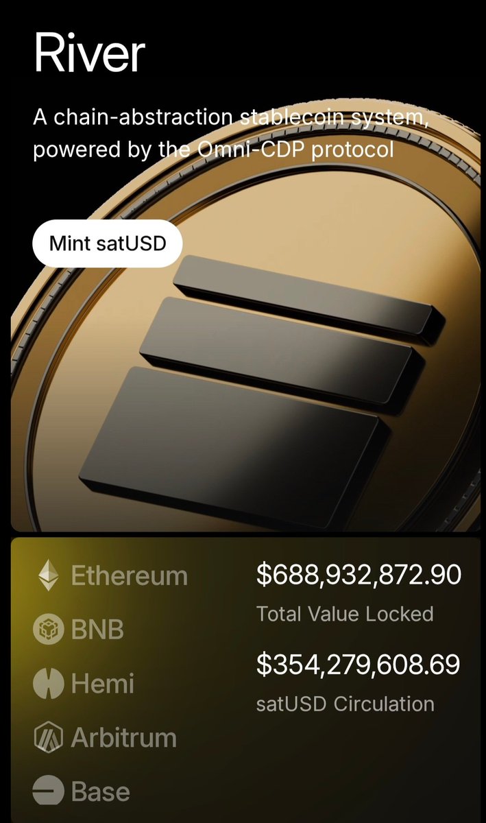 ใ satUSD์ ์ฑ์ฅ ์๋๋ ํ์ ใ @RiverdotInc @River4fun River ์ ํธ์์ ๋ณด๋์ค ํฅ๋ฏธ๋ก์ด๊ฒ์ด ๋์ ๋ณด์ฌ ๊ณต์ ํด ๋๋ฆฝ๋๋ค ์ง๋ 5์ TVL 6000๋ง ๋ฌ๋ฌ ( ์ฝ 860์ต ) satUSD ์ ํต๋ 1000๋ง ๋ฌ๋ฌ (์ฝ 140์ต) ํ์ฌ TVL 7์ต2000๋ง ๋ฌ๋ฌ ( ์ฝ 1์กฐ ) satUSD ์ ํต๋ 4์ต 2000๋ง ๋ฌ๋ฌ ( ์ฝ 6์ฒ์ต ) TVL 1100% ์์น ( 9000์ต ์ด์ ) Circulation 4100% ์์น ( 5800์ต ์ด์ ) ์ ๊ฐ ์๊ฐํ๋๊ฒ๋ณด๋ค ํจ์ฌ ๊ฐํ๋ฅธ ์ฑ์ฅ์ด์์ด์ ๋๋์ต๋๋ค ๊ฒ๋ค๊ฐ ๋ช์ผ์ AMA ๊ฐ ์์์ฃ ? ๊ฑฐ๊ธฐ์ ๋์จ ๋ก๋๋งต์ ๋ณด๋ฉด 1. BNB ์ํ๊ณ ํ์ ์ ๋ฐ์ดํธ 2~4์ฃผ ๋ด์ ์์ ์ฑ๊ณต์ ์ธ ํตํฉ์ด ์ด๋ฃจ์ด์ง๋ฉด BNB ์ฒด์ธ์ ๋๊ท๋ชจ ์ฌ์ฉ์ ๋ฐ ์ ๋์ฑ์ ํก์ํ์ฌ ํ๋กํ ์ฝ์ TVL์ด ํฌ๊ฒ ์ฆ๊ฐํ ์ ์์ต๋๋ค 2. SmartVaults ์ถ์ 30~60์ผ ๋ด์ ์ถ์๋ SmartVaults๋ satUSD์ '์์ตํ' ๊ฐ์น๋ฅผ ๊ทน๋ํํ ๊ฒ์ ๋๋ค. satUSD์ ์ฑํ๋ฅ ์ ๊ธ์๋๋ก ๋์ด์ฌ๋ฆด์ ์์ต๋๋ค River ํ์ satUSD ์ฑ์ฅ์ ์ง์ฌ์ด๋ฉฐ ๋ก๋๋งต๋๋ก ๋ ๊ฒฝ์ฐ์ ๋ ๋ง์ ์ฑ์ฅ์ด ์ด๋ฃจ์ด ์ง๊ฒ์ด๋ฉฐ ์ด๊ฒ์ River ์ํ๊ณ ์ ์ฒด์ ์ธ ์ฑ์ฅ์ ์ํฅ์ ์ค๊ฒ์ ๋๋ค