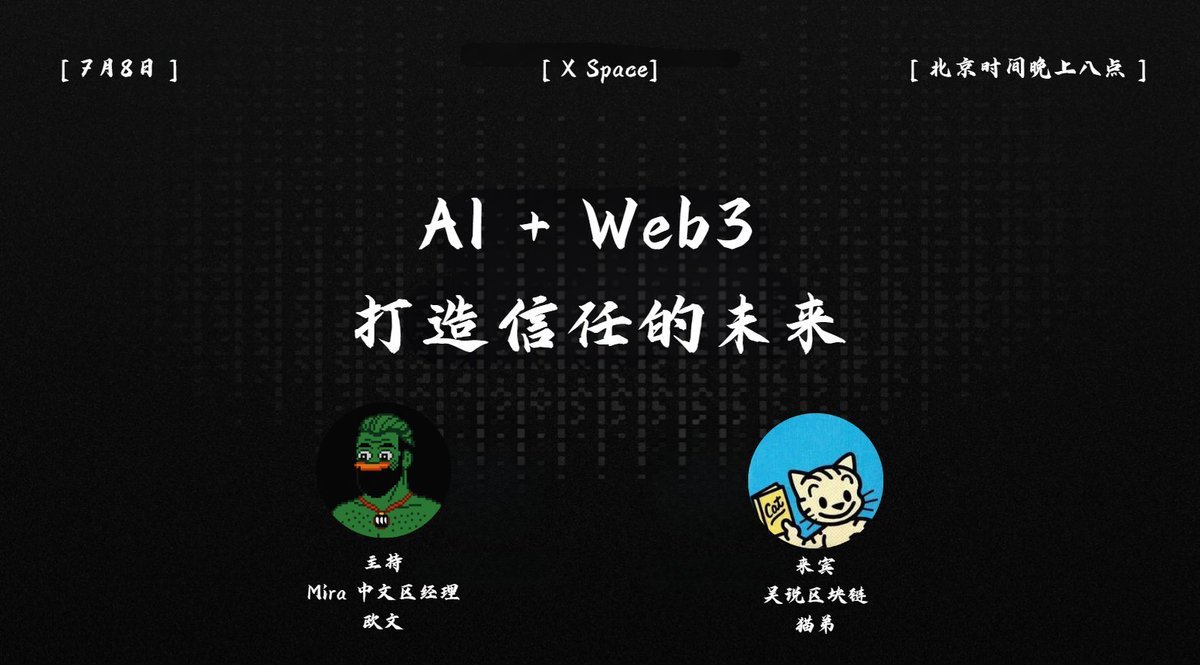 昨天晚上 @MiraNetworkCN @Mira_Network 和 @maodi86 一起探讨 AI + 创作者 + 普通用户的未来以及 Web3 + AI 的无限可能 这场Space活动很多干货内容,我整理了其中要点一起跟大家分享一下 1️⃣嘉宾是猫弟老师,来自于吴说区块链@wublockchain12 @WutalkWu 。猫弟老师21年底入行,一直在吴说做编辑和分析师 2️⃣AI:工作神器,但也有“副作用” 猫弟老师觉得AI对于日常工作是很有帮助的。他最早接触AI是通过ChatGPT,觉得这工具简直是神器 比如写文章没思路,AI可以配合查资料、整理框架;比如做文章没有好看的封面,AI一键生成封面图,连版权问题都不用担心。比如跟老外沟通时,AI还能帮他把中文表达改得更符合老外的习惯,省了不少麻烦 但是AI也有负面问题,比如带来了KOL虚假繁荣问题。推特上有很多假KOL用AI生成文案,内容都是千篇一律,并且已经污染推特时间线了 这对普通用户来说是个很大的问题,因为普通用户很难分辨哪些是真人发表观点,哪些是纯AI“水货” 假人 🤔个人思考:AI是把双刃剑,看大家怎么用怎么看待 AI只是辅助,真实、用心才是大杀器 3️⃣KOL的困境:如何在AI时代保持真实? 猫弟老师认为真正的KOL得有独到见解和行业影响力,而不是靠刷粉、蹭热点等行为 他觉得,现在加密圈里的优质KOL其实不多,有些人靠情绪价值(比如爆料)吸引流量,但内容质量参差不齐 AI对KOL是把双刃剑:一方面,它能帮真实的kol高效产出,比如整理资料和思路、优化表达;另一方面,滥用AI会让内容同质化,提高了粉丝的分辨门槛和对kol本身的信任 猫弟老师的建议是:希望KOL这个群体得做一些像“真人”一样的行为,最真实的情绪和观点表达可以让粉丝保持长久的信任和忠诚 外部的检测方案比如通过链上行为(像NFT绑定身份,通过链上交互跟踪去解决信任问题)或真人验证(比如WLD的虹膜扫描)来证明“kol不是AI” 🤔个人思考:自己保持真实,情绪、心理、盈亏都需要如此 外物辅助支持,比如通过一些硬件等东西验证真假 4️⃣Web3+AI:伪命题还是新机会? 猫弟老师觉得“Web3+AI”有点像伪命题 因为AI追求效率,靠海量算力和数据优化模型,而Web3强调去中心化和用户数据主权,这俩目标有点“拧巴”,或者说背道而驰 他举例说,Web3当年在游戏行业解决资产归属问题(比如NFT化的游戏道具),确实有意义,但套到AI上其实意义不大 不过,短期看,这个赛道倒是有不少炒作机会。最近几年,AI+Web3的项目层出不穷,像Worldcoin用虹膜验证身份,io.net做算力分配,还有AI驱动的社交账号(能模仿人类发推) 这些项目有的市值还挺高,但猫弟老师觉得八九成的项目可能只是“发币割韭菜”🐶 🤔个人思考:猫弟老师说的很多,其实很多人都在装傻:赛道有问题,但是赚钱没毛病 5️⃣AI的“幻觉”问题:区块链能帮忙吗? AI有个大bug,叫“幻觉”——有时候它会一本正经地胡说八道 比如你问个问题,它可能因为引导性提问给出错误答案,还得你手动纠正 MIRA通过区块链解决了这个问题:通过去中心化的节点网络,集合多个大语言模型的输出,投票选出“最靠谱”的答案,再反馈给用户 猫弟老师觉得这思路挺有趣,相当于给AI加了个“信任层”,但目前产品还偏技术,普通用户体验不够丰富,他挺期待后续发展,其实可以去 🤔个人思考:我个人觉得MIRA做的事情不错,既不像某些项目恨不得AI所有的问题都解决,或者要不吹的巨大 MIRA脚踏实地的“解决幻觉”问题很有价值 6️⃣未来:真实性是核心 在AI越来越强大的未来,真实性会变得更珍贵 不管是KOL想脱颖而出,还是Web3项目想突围,都得解决信任问题 猫弟老师提到,电影《黑客帝国》里那种“全被AI操控”的场景虽然夸张,但提醒大家务必注意信息过载和数据隐私 他建议:创作者要用AI做帮手,但别丢了自己的声音;用户则要擦亮眼睛,别被“AI水军”忽悠 🤔个人思考:真诚,还是TMD的真诚 7️⃣体验产品 + 测试积分 大家可以去了解MIRA的积分系统和空投计划 第一个兑换产品已经上线且落地,叫Klok,欢迎大家去体验一波多模型验证的AI对话