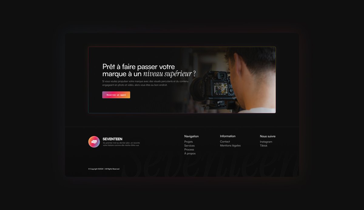 1 Jour : 1 Design Huitième jour du challenge personnel. Aujourd’hui, j’ai bossé sur un footer pour la landing page d’une agence vidéo (@clementhm_ 👀) Pas forcément la partie la plus fun d’un site, mais c’est justement ce qui rend l’exercice intéressant : trouver le bon équilibre entre structure, lisibilité et petite touche de personnalité pour que ça reste cohérent avec le reste de la page Jour 8