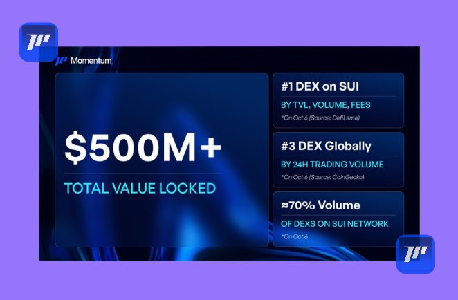 Momentum @MMTFinance went from a decent DEX to top on #Sui and flirting with #2 global volume; TVL blew past $500M, 70% of Sui tx flowing through it; $1B day not a fluke