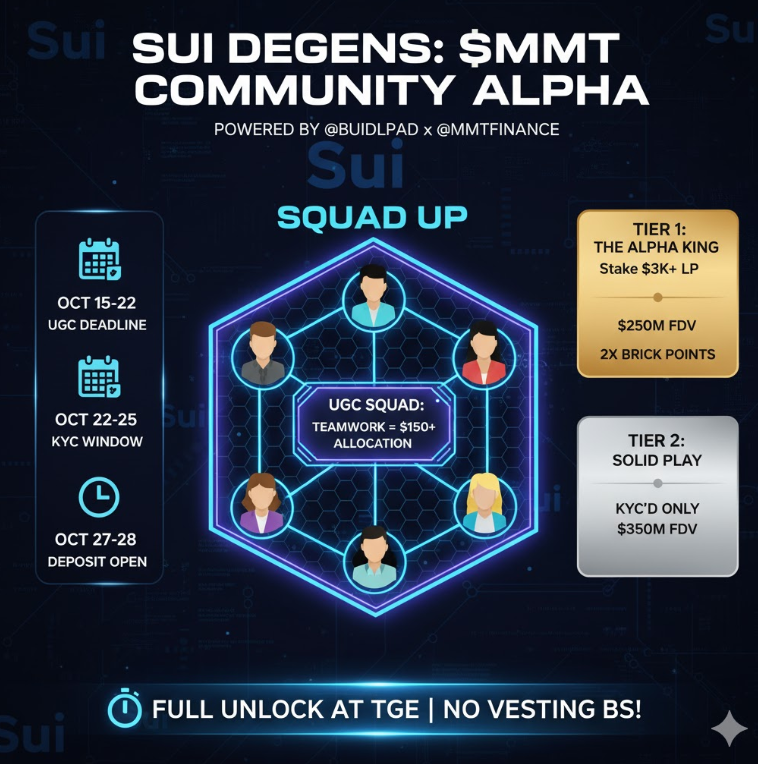 - UGC Squad Alpha: Deadline Oct 15-22. Just 5 high-quality posts and a max 10-person squad secures a $150+ Protected Allocation. Teamwork makes the dream work—leverage the community.