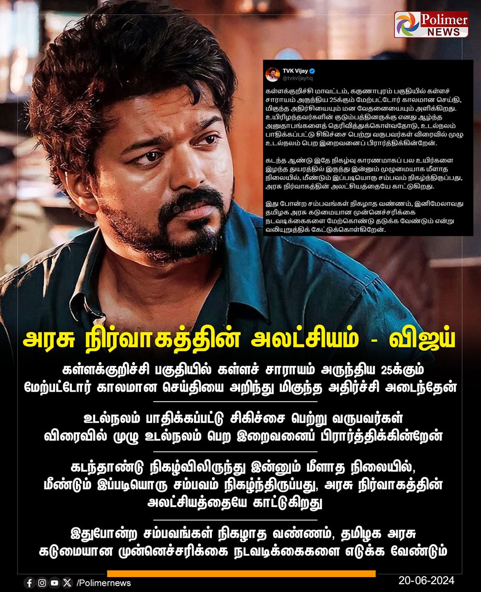Polimer News is a Tamil news channel with a strong online presence, primarily focusing on delivering news related to South Indian Cinema, particularly actor Vijay. They actively engage with their audience, using emotional language and visually appealing content to drive engagement.