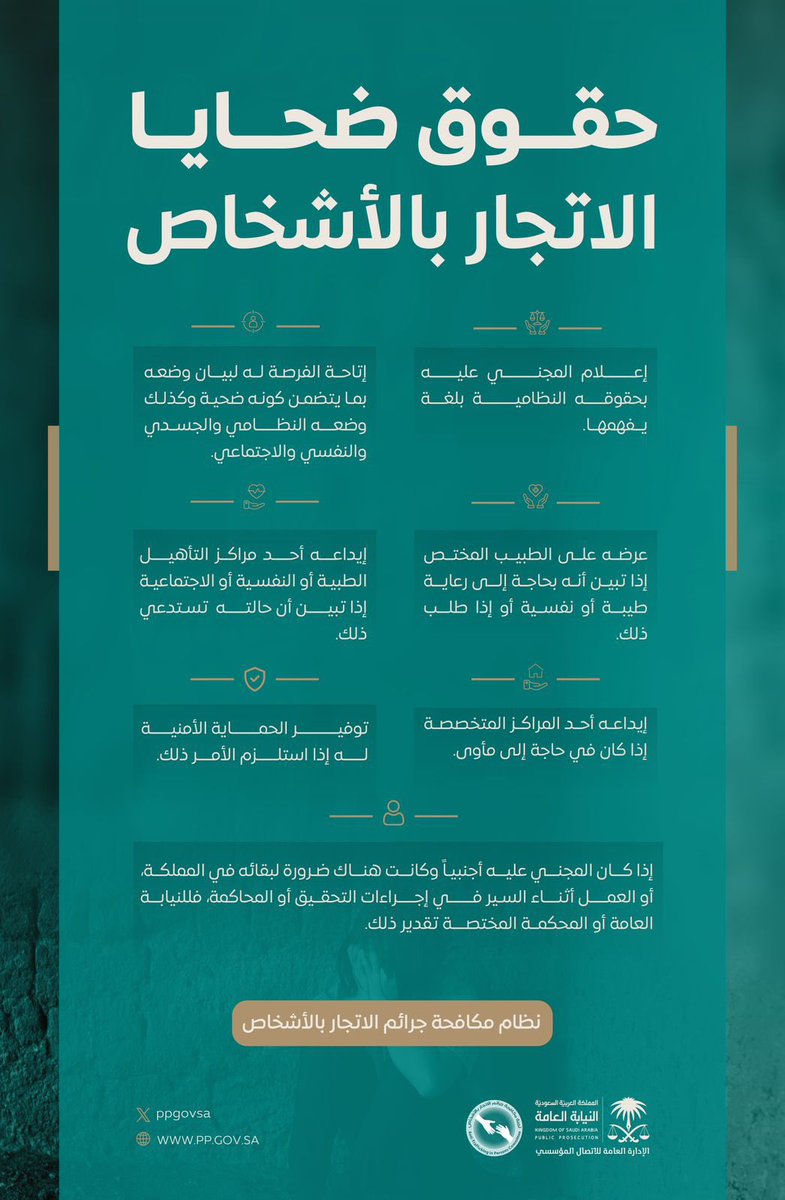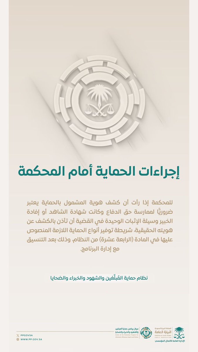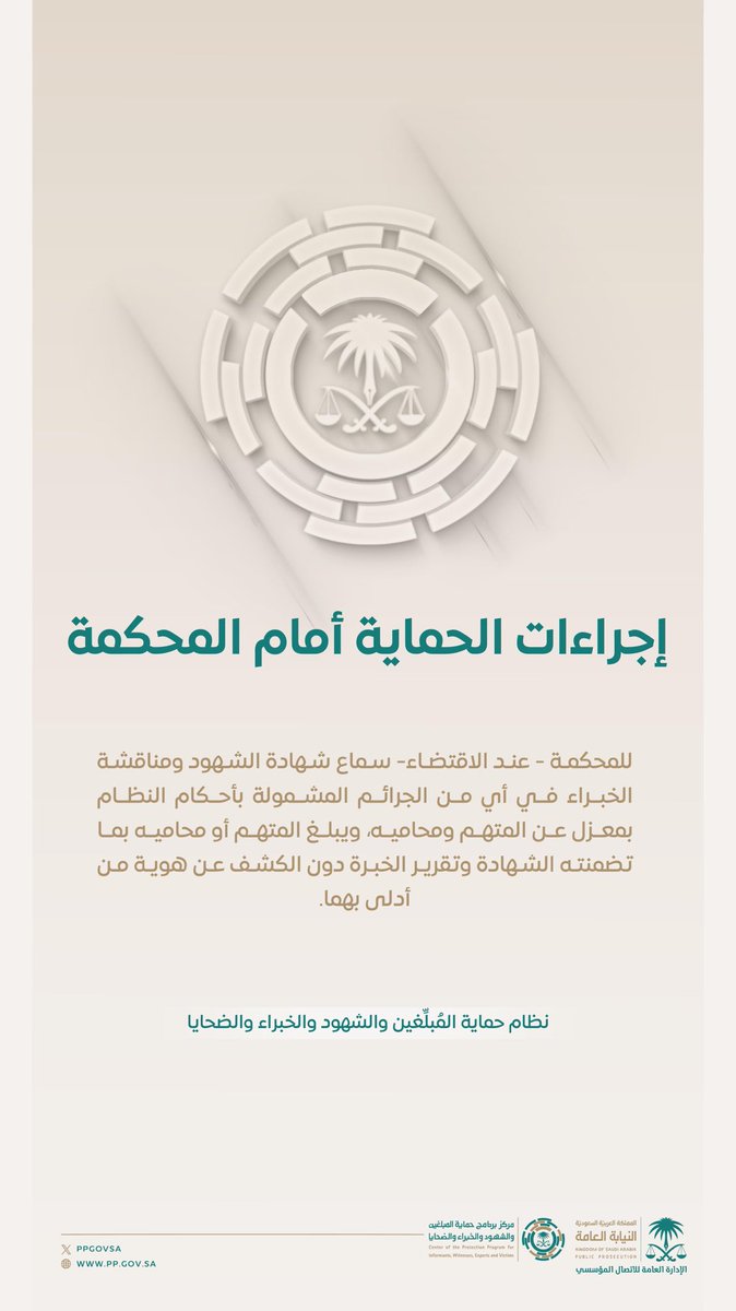 The official account of the Public Prosecution in Saudi Arabia, committed to upholding the law and protecting citizens' rights. They use their platform to educate the public about legal matters, share important announcements, and advocate for justice and transparency.