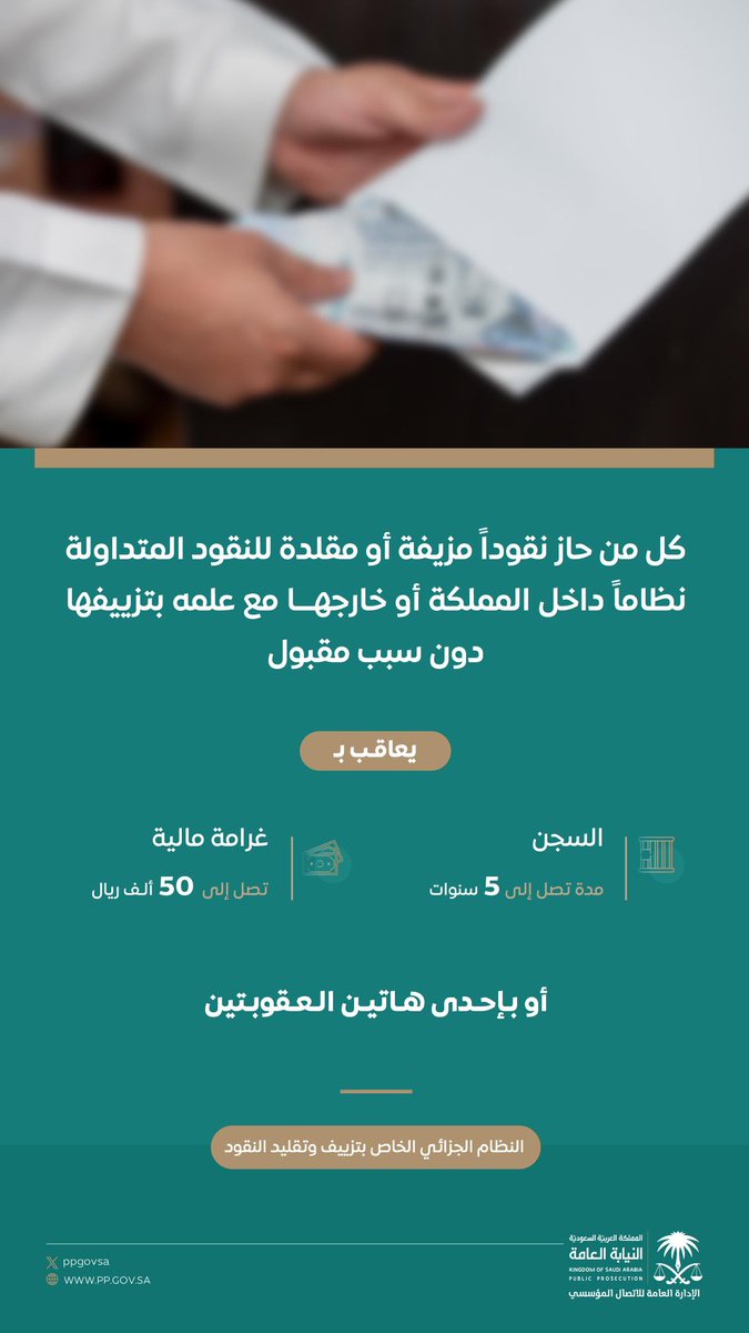 الحساب الرسمي - النيابة العامة بالمملكة العربية السعودية - للتواصل: esportal.pp.gov.sa