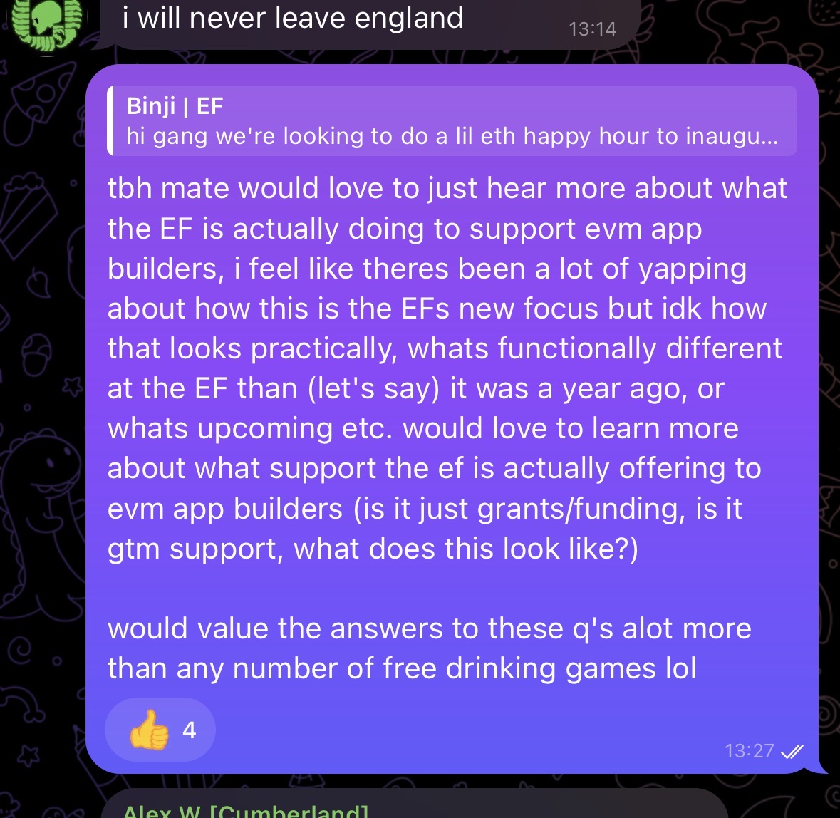 Landing the role of chief reply guy and lead partnerships at @ripdotfun, proving that relentless engagement and comedic flair can lead to real-world career moves in the crypto space.