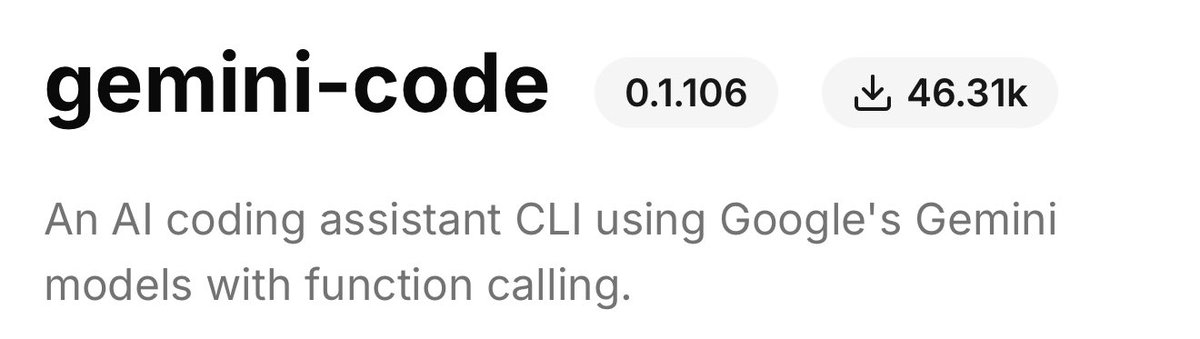 Try out Gemini Code: a coding assistant in your terminal powered by Gemini 2.5 Pro. 💜 geminicodes.co 💜 Release Notes: → It's easy to get started, just run `pip install gemini-code` in a virtual environment, and then run `gemini` to initialize it. It requires your own API key, so don't forget to get one from ai.dev → I built this because I love Claude Code and wanted a similar experience -- I like that I can just use my own API key and Gemini is generally way cheaper as well. → Found a bug? Feel free to fork the code and fix it (lol)! If you want to try to improve it, please do so - repo is public! → Reminder and a disclaimer that I don't work at Google and this is not an official Google project - just a weekend side hack → It is highly likely you'll get throttled by rate limits - I put as much info as I can in the guide so you know what behavior to expect when that happens. You can also set which default model to use if you want to switch to 1.5 Pro.