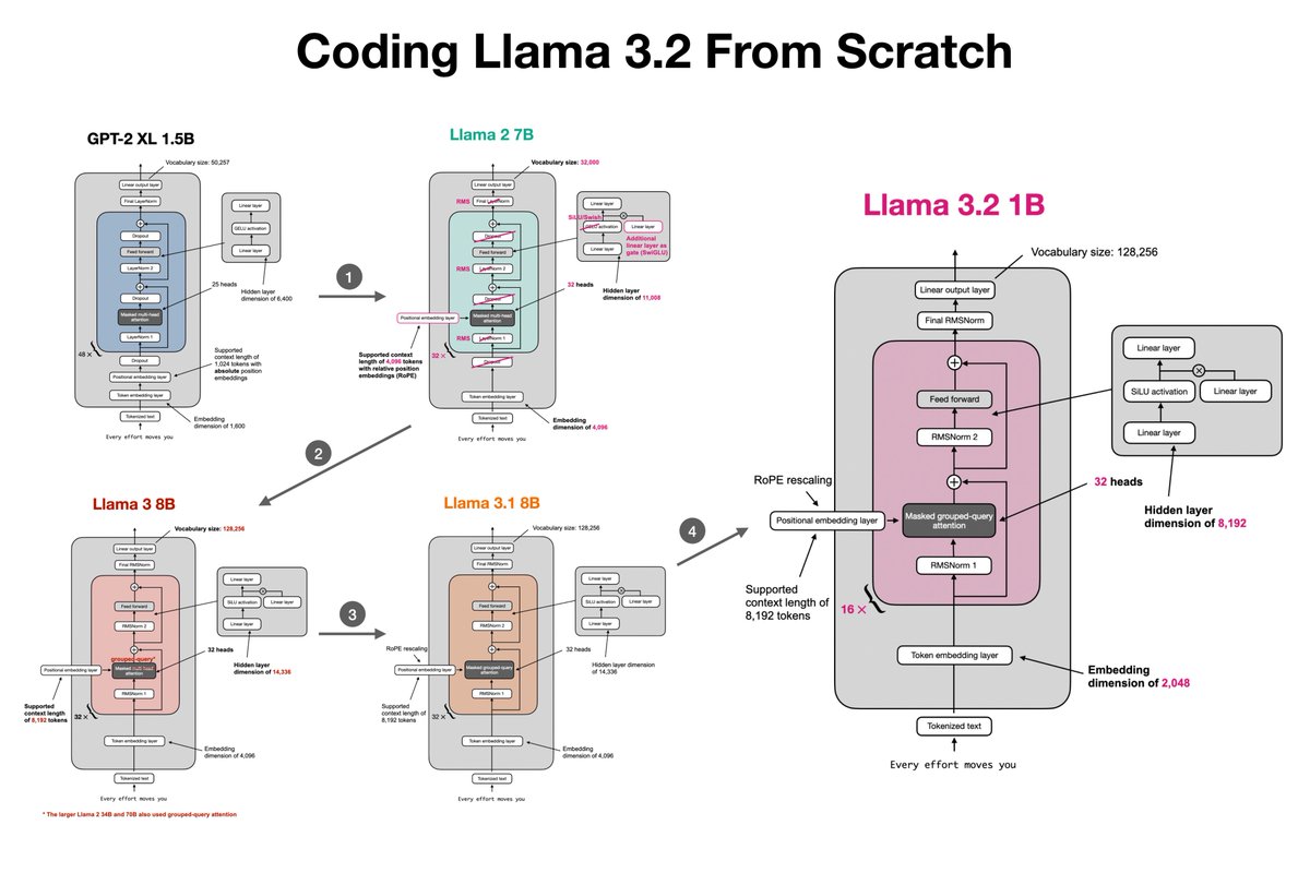 One of the best ways to understand LLMs is to code one from scratch! Last summer, I started working on a new book, "Build a Large Language Model (from Scratch)": manning.com/books/build-a-… I'm excited to share that the first chapters are now available via Manning's early access program if you are looking to read something over the holidays or pick up a new project in 2024! In short, in this book, I'll guide you step by step through creating your own LLM, explaining each stage with clear text, diagrams, and examples. This includes Implementing the data preparation, sampling, and tokenization pipeline: 1. Coding multi-head attention from the ground up 2. Building and pretraining a GPT-like model 3. Learning how to load pretrained weights 4. Finetuning the model for classification 5. Instruction-finetuning the model with direct preference optimization PS: The code implementations are in PyTorch. Don't hesitate to reach out if you have any questions!