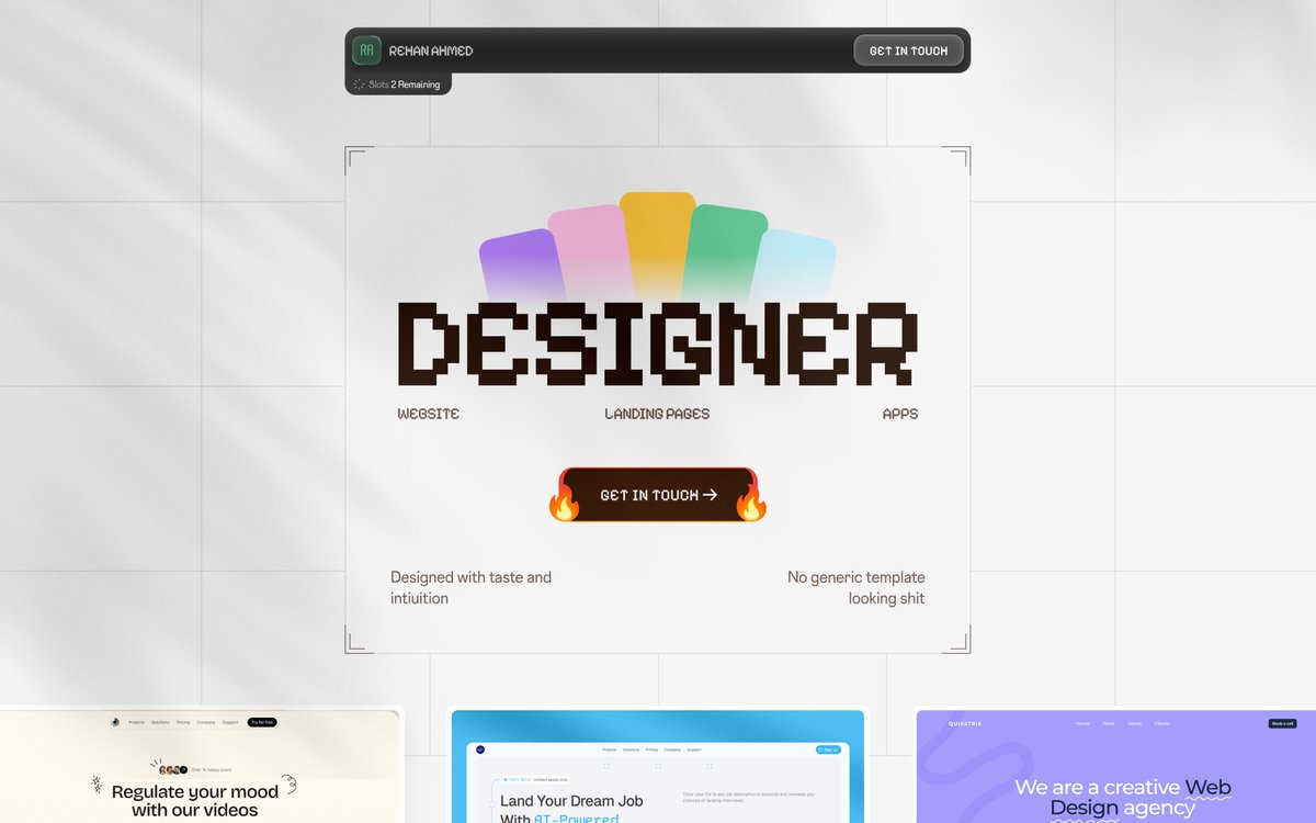 Designing Apps & Website. Open to Work. @framer Partner. Book a call: cal.com/rehannn