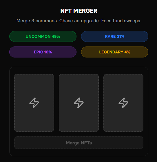 MERGE and UPGRADE by fusing 3x Commons into a single, higher-tier NFT