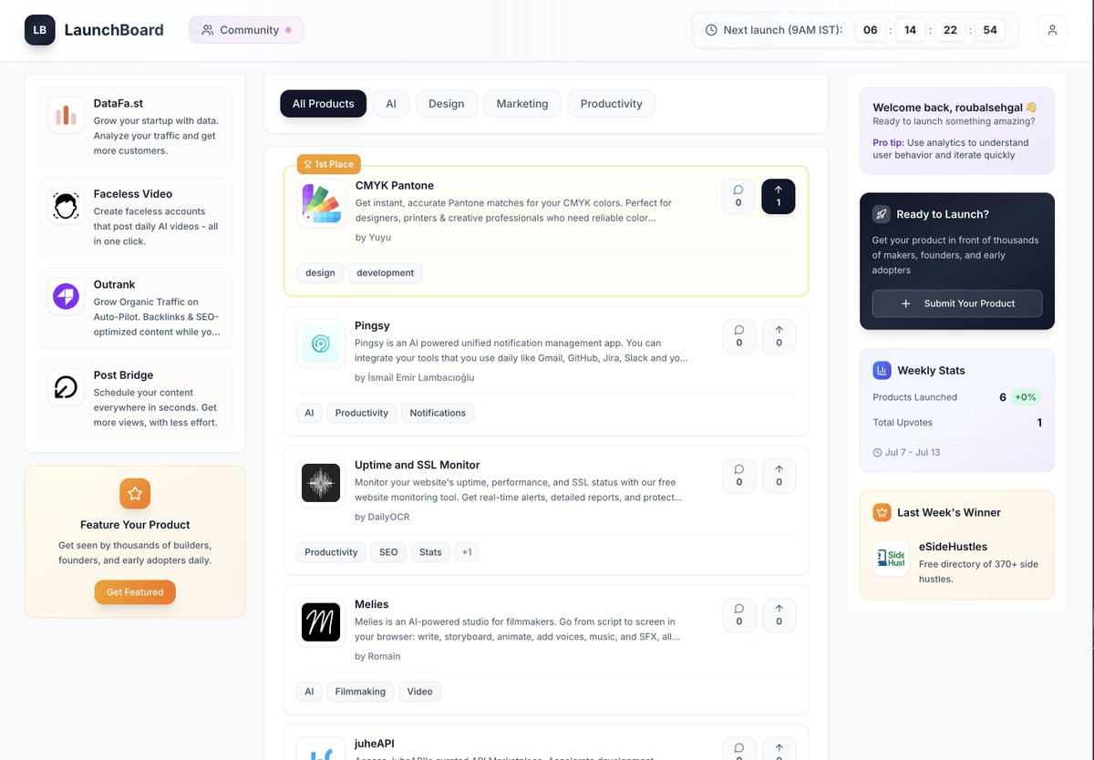 Fun fact: Roubal doesn’t just build products — he also creates ecosystems like LaunchBoard, ranking 50 new product launches weekly by real traction and rewarding winners with cash prizes, proving he walks the talk of supporting fellow builders.