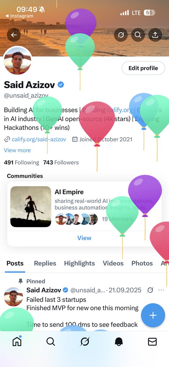 Said Azizov is a resilient and ambitious entrepreneur dedicated to revolutionizing real estate with AI-powered automation. With a hustle mindset, he shares the ups and downs of startup life while actively seeking feedback and clients to grow his ventures. His engaging tweets reflect both his determination and community-driven spirit.