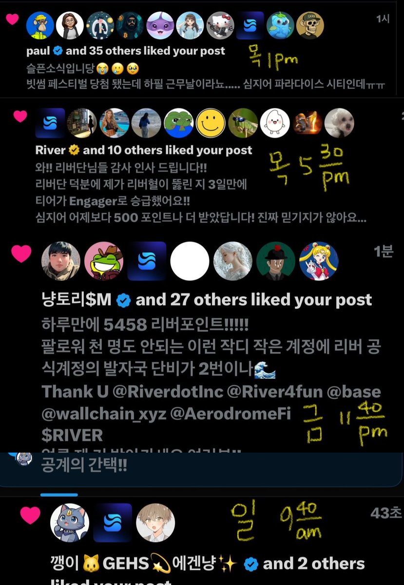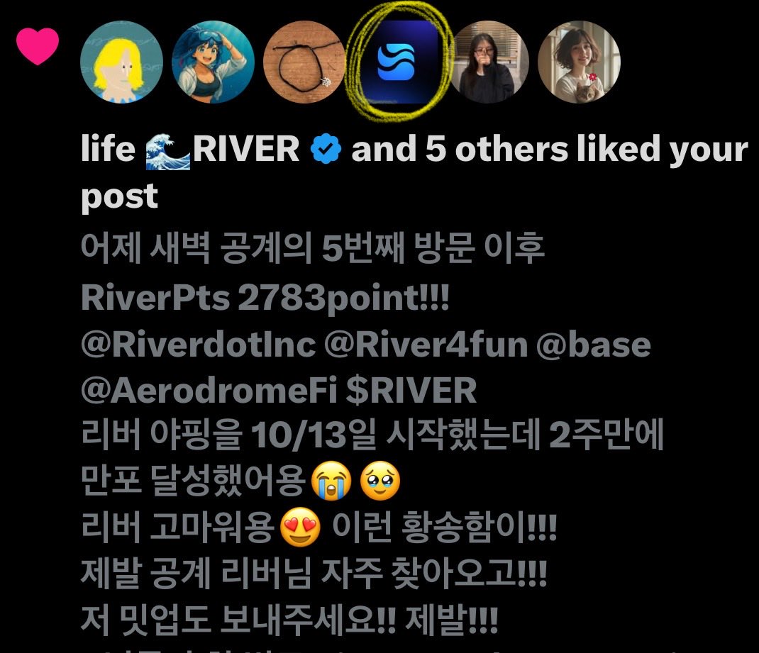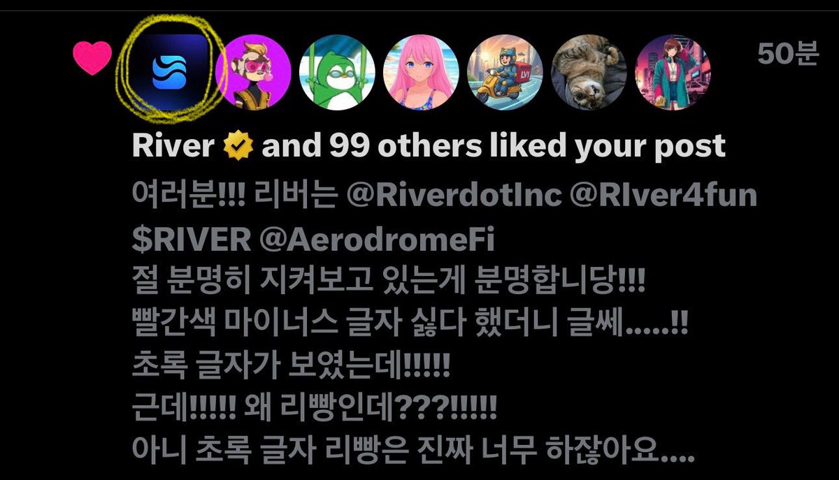 ์๋ค์ฉ\n์งฑ ๊ณ ๋ง์ก๐๐๐ฅน\n@RiverdotInc @River4fun @base @EdgenTech @wallchain_xyz @AerodromeFi $RIVER \n๊ทธ ์์ค์ ๋ฆฌ๋ฒ ์๊ฐ๋ฟ!\n\n์น์๋(์ ์ํฝ), ์ ์คํฐ์ค, \nQWER(์๋ฆฌ์ง๋ค~~~), ๊ทธ๋ฆฌ๊ณ ํ์ฐ๋๊น์ง!! ํ๋ณต์ฐ๋๋ฏธ๐ ๊ผญ ๊ธฐ๋กํ๊ณ ์ถ์ด์ ์