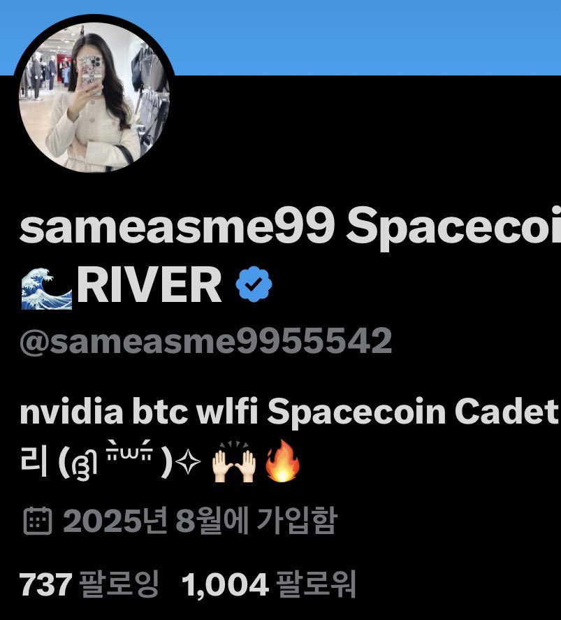 {"data":{"__meta":{"device":false,"path":"/creators/sameasme9955542"},"/creators/sameasme9955542":{"data":{"user":{"id":"1951059618769281024","name":"sameasme99 Spacecoin ๐ฐ๏ธ edge๐ฆญ๐RIVER","description":"nvidia btc wlfi Spacecoin Cadet ๐ฐ๏ธ ํฌ๋ฆฝํ ๋ฅผ ๋๋ฆฌ ๋๋ฆฌ (เดฆเตเดฆเดฟ หอฬ๊ณหอฬ )โง ๐๐ป๐ฅ ์์ ๋ก์ด ์ผํ์ ์ถ๊ตฌํฉ๋๋น! ์ํธ๋ ์๋ฒฝ์๋ ๊ณ์๋ฉ๋๋น. ๊ทธ๋ฆฌ๊ณ ์ฌ์ง ๋์ฉํ๋ฉด ํ์ ๋