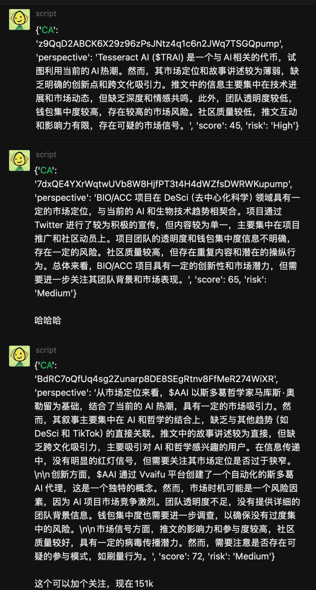 {"data":{"__meta":{"device":false,"path":"/creators/scriptdotmoney"},"/creators/scriptdotmoney":{"data":{"user":{"id":"1337955556087099394","name":"script (🛠, 🤖)","description":"AI Dev | Founder of @cryptochasersco | Maestro Ambassador of @myshell_ai","followers_count":21866,"friends_count":6943,"statuses_count":4607,"profile_image_url_https":"https://pbs.twimg.com/profile_images/1873033684909211650/jibPHx1p_normal.jpg","screen_name":"scriptdotmoney","location":"dWeb","entities":{"description":{"urls":[]},"url":{"urls":[{"display_url":"t.me/scriptmoneynot…","expanded_url":"https://t.me/scriptmoneynotes","url":"https://t.co/p3ODSw1gBq","indices":[0,23]}]}}},"details":{"type":"The Innovator","description":"Script is a trailblazing AI developer and crypto enthusiast who combines cutting-edge technology with sharp market insights. As the founder of @cryptochasersco and a Maestro Ambassador for @myshell_ai, Script powers through data with precision and a dash of humor. Their tweets blend practical trading advice, AI development tips, and a keen eye for crypto market trends, making complex ideas feel refreshingly accessible.","purpose":"To push the boundaries of AI-driven finance by creating innovative tools and strategies that empower others to navigate and profit in the crypto ecosystem.","beliefs":"Script believes in the transformative power of automation and data-driven decision-making, valuing early risers who seize scientifically optimized trading windows and embracing community-driven innovation in crypto and DeSci sectors.","facts":"Fun fact: Script is convinced that mastering memes and crypto trading doesn't require sleepless nights—in fact, waking up early is their secret weapon for success!","strength":"Combines deep technical prowess with a strategic approach to trading, providing well-researched, actionable insights that help followers harness AI and crypto tools effectively.","weakness":"Sometimes overflows with data and technical jargon, which might leave casual followers scratching their heads or overwhelmed; also, the frenetic tweeting pace of 4607 tweets risks diluting their message.","roast":"With nearly 7,000 follows and over 4,600 tweets, Script’s timeline looks like a nonstop data dump—if you can’t handle code and crypto memes flooding your feed, you might want to block before you blink.","win":"Successfully leveraged AI and trading to secure a consistent 20% return within a month, proving that their blend of tech savvy and market knowledge isn’t just talk—it actually works.","recommendation":"To grow their audience on X, Script should simplify and highlight key insights through engaging visuals like tweet threads or infographics, and occasionally share personal stories to humanize their tech-heavy content, making it more relatable and shareable."},"tweets":[{"bookmarked":false,"display_text_range":[0,18],"entities":{"hashtags":[],"media":[{"display_url":"pic.x.com/xSk9MhYhwa","expanded_url":"https://x.com/scriptdotmoney/status/1877957562366366037/photo/1","id_str":"1877957483639291904","indices":[19,42],"media_key":"3_1877957483639291904","media_url_https":"https://pbs.twimg.com/media/Gg_YYaubQAA69wl.jpg","type":"photo","url":"https://t.co/xSk9MhYhwa","ext_media_availability":{"status":"Available"},"features":{"large":{"faces":[{"x":10,"y":295,"h":192,"w":192},{"x":183,"y":289,"h":205,"w":205}]},"medium":{"faces":[{"x":10,"y":295,"h":192,"w":192},{"x":183,"y":289,"h":205,"w":205}]},"small":{"faces":[{"x":7,"y":216,"h":140,"w":140},{"x":134,"y":211,"h":150,"w":150}]},"orig":{"faces":[{"x":10,"y":295,"h":192,"w":192},{"x":183,"y":289,"h":205,"w":205}]}},"sizes":{"large":{"h":910,"w":928,"resize":"fit"},"medium":{"h":910,"w":928,"resize":"fit"},"small":{"h":667,"w":680,"resize":"fit"},"thumb":{"h":150,"w":150,"resize":"crop"}},"original_info":{"height":910,"width":928,"focus_rects":[{"x":0,"y":0,"w":928,"h":520},{"x":0,"y":0,"w":910,"h":910},{"x":0,"y":0,"w":798,"h":910},{"x":0,"y":0,"w":455,"h":910},{"x":0,"y":0,"w":928,"h":910}]},"media_results":{"result":{"media_key":"3_1877957483639291904"}}}],"symbols":[],"timestamps":[],"urls":[],"user_mentions":[]},"extended_entities":{"media":[{"display_url":"pic.x.com/xSk9MhYhwa","expanded_url":"https://x.com/scriptdotmoney/status/1877957562366366037/photo/1","id_str":"1877957483639291904","indices":[19,42],"media_key":"3_1877957483639291904","media_url_https":"https://pbs.twimg.com/media/Gg_YYaubQAA69wl.jpg","type":"photo","url":"https://t.co/xSk9MhYhwa","ext_media_availability":{"status":"Available"},"features":{"large":{"faces":[{"x":10,"y":295,"h":192,"w":192},{"x":183,"y":289,"h":205,"w":205}]},"medium":{"faces":[{"x":10,"y":295,"h":192,"w":192},{"x":183,"y":289,"h":205,"w":205}]},"small":{"faces":[{"x":7,"y":216,"h":140,"w":140},{"x":134,"y":211,"h":150,"w":150}]},"orig":{"faces":[{"x":10,"y":295,"h":192,"w":192},{"x":183,"y":289,"h":205,"w":205}]}},"sizes":{"large":{"h":910,"w":928,"resize":"fit"},"medium":{"h":910,"w":928,"resize":"fit"},"small":{"h":667,"w":680,"resize":"fit"},"thumb":{"h":150,"w":150,"resize":"crop"}},"original_info":{"height":910,"width":928,"focus_rects":[{"x":0,"y":0,"w":928,"h":520},{"x":0,"y":0,"w":910,"h":910},{"x":0,"y":0,"w":798,"h":910},{"x":0,"y":0,"w":455,"h":910},{"x":0,"y":0,"w":928,"h":910}]},"media_results":{"result":{"media_key":"3_1877957483639291904"}}}]},"favorited":false,"lang":"ja","possibly_sensitive":false,"possibly_sensitive_editable":true,"retweeted":false,"fact_check":null,"id":"1877957562366366037","view_count":96100,"bookmark_count":356,"created_at":1736574948000,"favorite_count":466,"quote_count":8,"reply_count":28,"retweet_count":84,"user_id_str":"1337955556087099394","conversation_id_str":"1877957562366366037","full_text":"玩meme不需要熬夜,反而要早睡早起 https://t.co/xSk9MhYhwa","in_reply_to_user_id_str":null,"in_reply_to_status_id_str":null,"is_quote_status":0,"is_ai":null,"ai_score":null},{"bookmarked":false,"display_text_range":[0,89],"ent