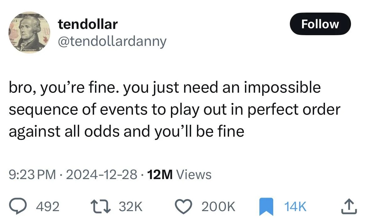 0.005 Seconds (3/694) is a master of blending dark humor with sharp social observations, using wit to dissect and entertain in equal measure. With a staggering tweet count and viral moments, their content thrives on playful absurdity and unexpected takes that captivate and provoke thought. Always pushing the limits of comedic storytelling, they bring levity to serious issues while keeping their audience engaged and amused.