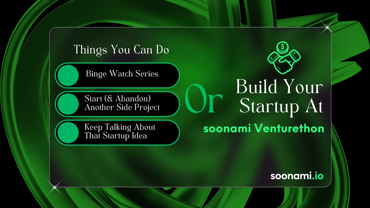 Participate in soonami Venturethon ➡️ Scale your Web3/ AI idea into a startup ➡️ Compete for up to $25k prize pool ➡️ Get $125k potential funding for your startup!