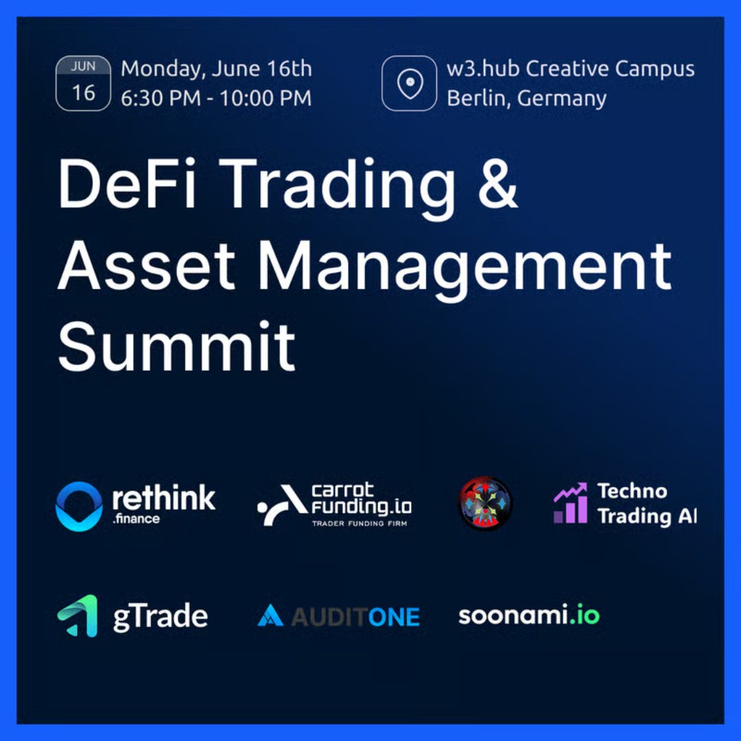 🗣 19:00 – Lightning Talks with @RethinkProtocol, @GnosisGuild, @GainsNetwork_io, @carrotfunding, Techno Trading AI & @soonami_io