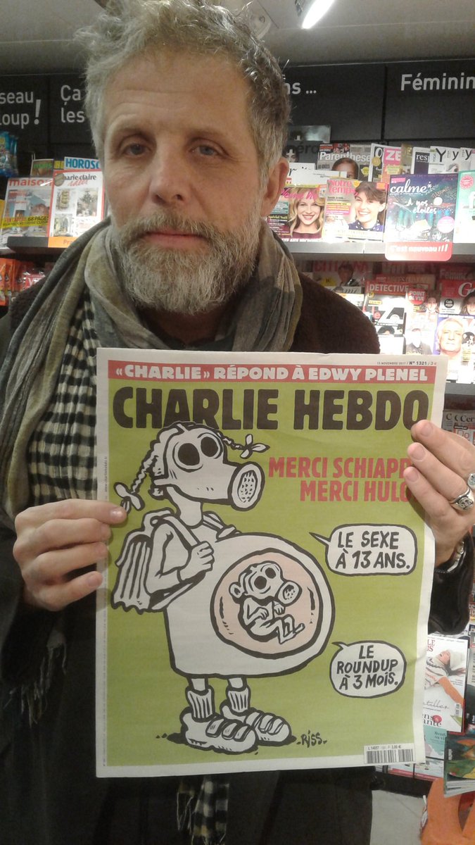 Merci à @Charlie_Hebdo_ de continuer à rire de tout. Face â la horde de pisse froids, de censeurs, de bien pensants. (De + en + nombreux) Quel courage et quelle nécessité. #CharlieHebdo