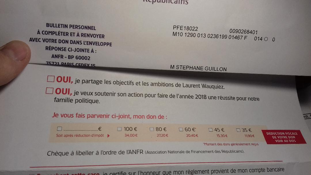 Cher @laurentwauquiez, j'ai reçu ce matin une demande de votre part pour me taper de l'argent. J'aurais adoré vous aider, mais financer quelqu'un qui a manqué à ce point de respect à @NicolasSarkozy c'est au-dessus de mes forces. bisous.
