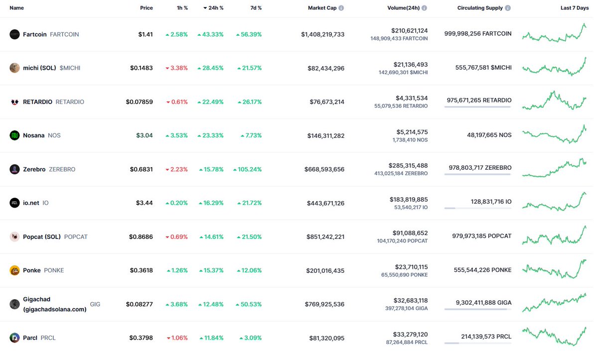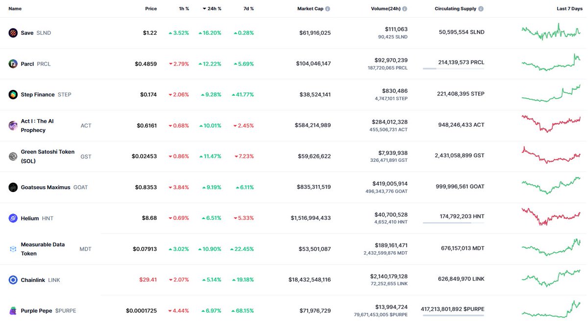 Notable #Solana tokens increase last 24H