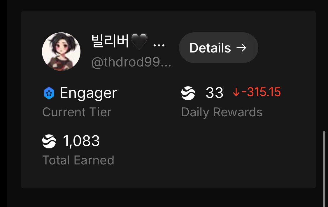 ์์ ์ด๋์ ๋ \n์ธ์ ์ด ๋๊ณ ์๋ค๋ ๊ฒ์ผ๋ก ๋ณด์ธ๋ค\n\nํ์ง๋ง\n\n๋ฆฌ๋๋ณด๋ 22์ 3800์ ์ ์ป์ด๋\nํ์ฐ ์์ต์ด 2๋ง์์ด ์๋๋ค๋ผ๋๊ฒ..\n์ฌ์ ํ ์ถฉ๊ฒฉ์ ์ด๊ธดํ๋ค\n\n12์ ๋ง์ด๋ฉด ์ด๋์ ๋ ์ค๊ณฝ์ด ๋์ค๊ฒ ์ง\n๋๋ ๋ด ๋ฆฌ๋ฒ๋ค ์ ๋ ์์ฌ์น์์\nํ์ง๋ง ์ฃ์ง๋ ๊ฐ์ด ๋ฐ ๊ฑธ์น ๊ฑฐ์ผ..","in_reply_to_user_id_str":null,"in_reply_to_status_id_str":null,"is_quote_status":1,"is_ai":null,"ai_score":null}]},{"label":"2025-11-18","value":0,"startTime":1763337600000,"endTime":1763424000000,"tweets":[]}]},"interactions":{"users":[{"created_at":1760959770000,"uid":"1980234813857796096","id":"1980234813857796096","screen_name":"YapperM009","name":"MO09๋ชจ๊ตฌ ๐RIVER","friends_count":1184,"followers_count":1165,"profile_image_url_https":"https://pbs.twimg.com/profile_images/1980353487562027008/thT1vHWZ_normal.jpg","description":"โจํ์ ํธ๋ ์ด๋ ๋ชจ๊ตฌ์ ์ผํ ์ผ๊ธฐ์ฅ โจ โจ๋งํ ์ํธ์์ฉ ์ธ์ ๋ ํ์ โจ","entities":{"description":{"urls":[]}},"interactions":1,"following":true,"followed_by":true},{"created_at":1759678968000,"uid":"1974862733217615872","id":"1974862733217615872","screen_name":"MonicaCryptoX","name":"Monica๐RIVER","friends_count":800,"followers_count":635,"profile_image_url_https":"https://pbs.twimg.com/profile_images/1989971484891103233/Y2UtkLgS_normal.jpg","description":"Web3็ฑๅฅฝ่