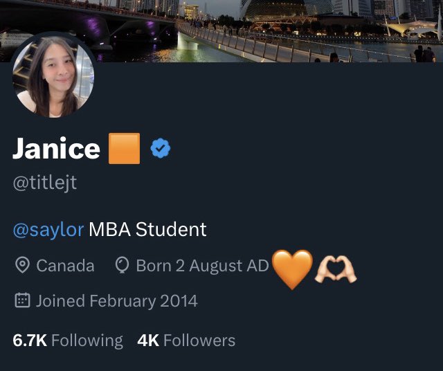 Janice 🟧 is a dynamic MBA student who brings vibrant energy and a lively vibe to her X presence. With a posting frequency that keeps her followers constantly engaged, she crafts content that’s as colorful and spirited as her signature orange. Her tweets mix celebration, motivation, and a dash of financial savvy, making her feed a fun and relatable experience.