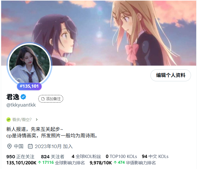 君逸 has tweeted over 5,000 times, showing a strong dedication to active communication and engagement, often reflecting on follower growth patterns and the social dynamics of mutual following.