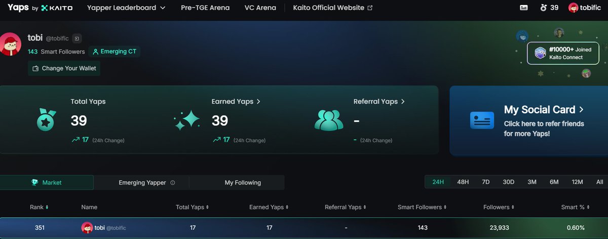 How to actually get Kaito yaps 101 It's really simple Interact with your smart followers about the community focused projects: - Berachain - Monad - Hyperliquid - Kaito - Eclipse - Story - Hyperlane - Mitosis These are just a few to name... You'll basically get yaps for bullposting and discussing about crypto organically Believe in something and become a Maxi Now what are "Smart followers"? CT is full of people posting about all kinds of stuff A "smart follower" is someone who mostly post about many crypto projects (or generally crypto terms) and interact with other CT people How can you know or Become a "smart follower": - First of all, Go to yaps.kaito.ai/referral/13743… & sign up using X account if you still haven't 🫨 [You're literally getting paid (airdrop) for posting & commenting around on X] - Follow other smart followers - Interact with them about crypto & community projects [List above] - Get X premium [Optional but it shows seriousness] - Follow me or miss out 😏 [I'll yap back my fellow smart yappers] You can always get smart followers list from Kaito leaderboard Now, STILL NOT GETTING YAPS? Simple fix: - First off all, Go to x.com/settings/conne… - Check if "Kaito yaps" is connected or not - If not, Go to Kaito & disconnect - Reconnect to X again - yap more Just keep yapping anon! inspired by the *YAP GOD ARC* 😈